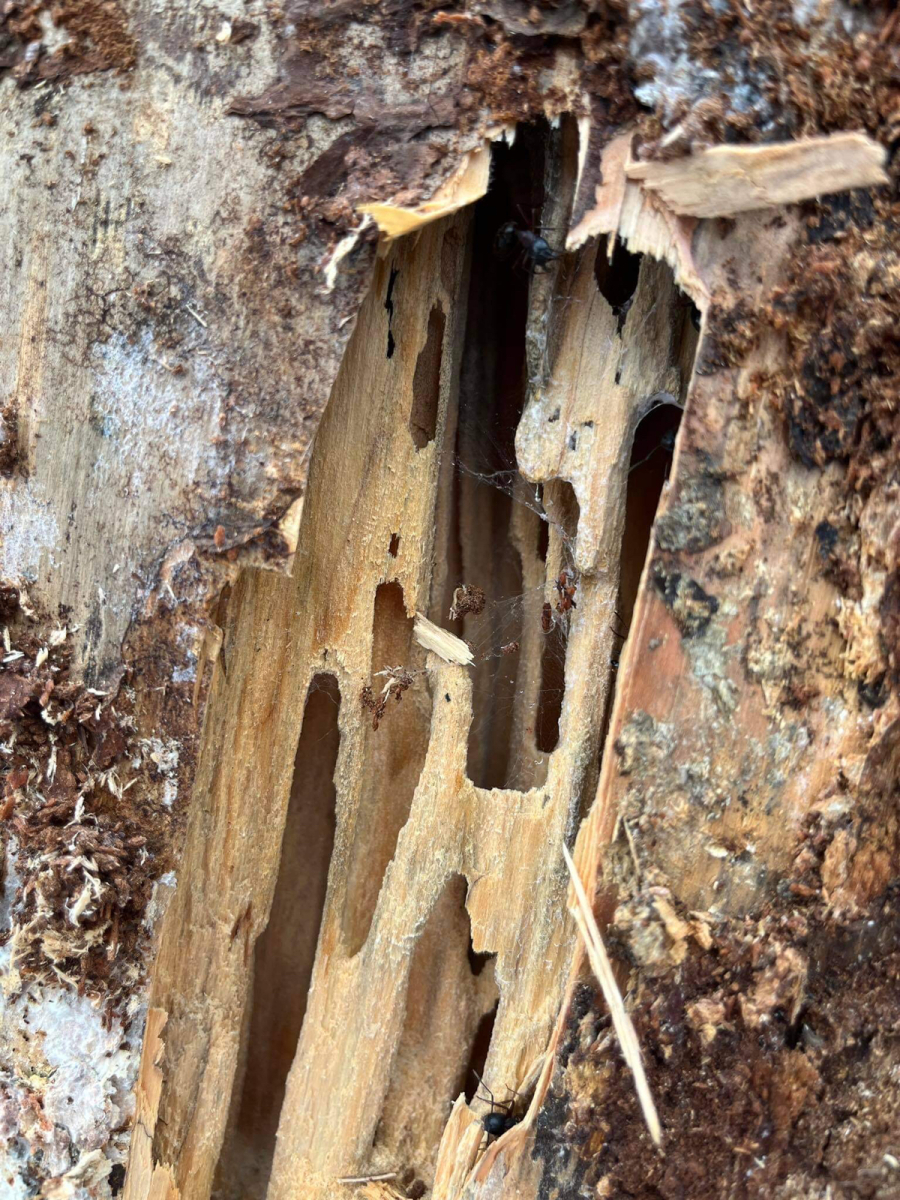Ants of the genus Camponotus, commonly known as carpenter ants, are known for their ability to damage wood structures. These ants do not eat wood like termites do, but they excavate galleries within it to build their nests. As they tunnel through the wood, they create smooth, clean galleries that are often mistaken for termite damage.The damage caused by Camponotus ants can be significant. They can weaken the structural integrity of wooden beams, furniture, and other wooden objects.The presence of carpenter ants may also attract other wood-destroying organisms, such as fungi, that further accelerate the deterioration process. These ants prefer damp and decaying wood, so areas with moisture problems are especially vulnerable to infestation.Similar damage can be done by species - Lasius fuliginosus.