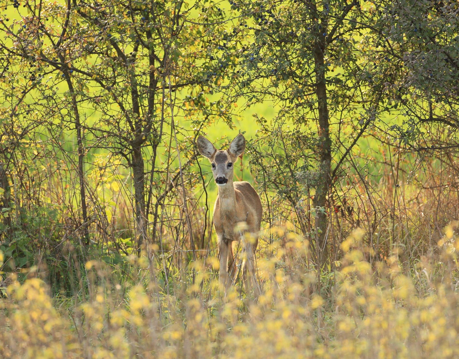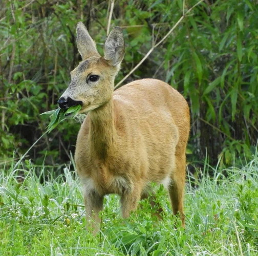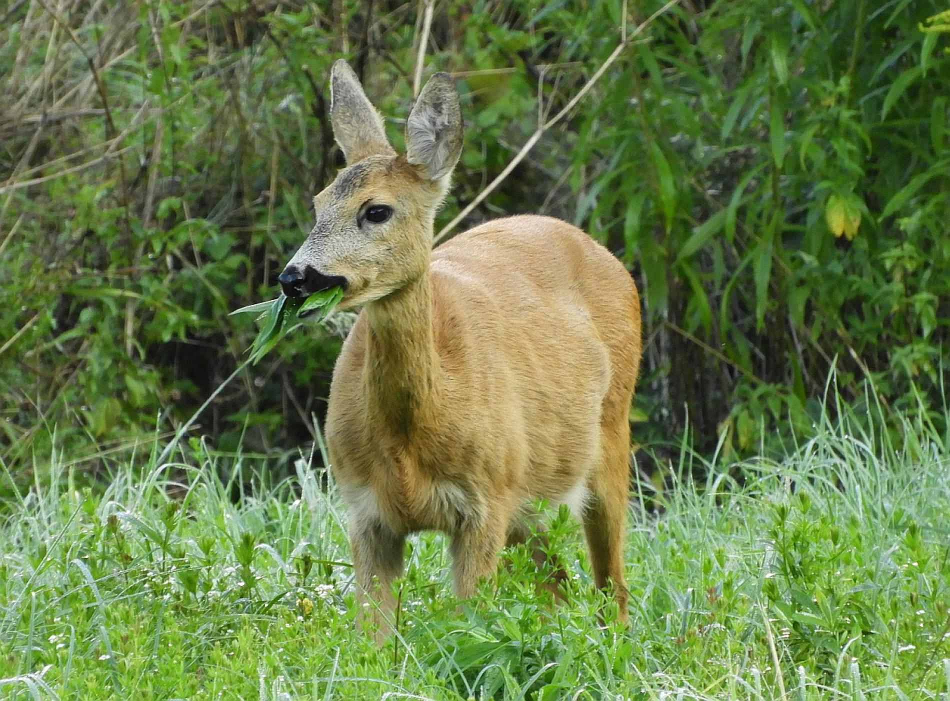 Roe deer is a small relative of the red deer. It weighs up to 30 kg. Males have relatively short antlers, that can grow up to a length of 20-25 cm. Male of roe deer throws antlers away every year to grow a new ones.