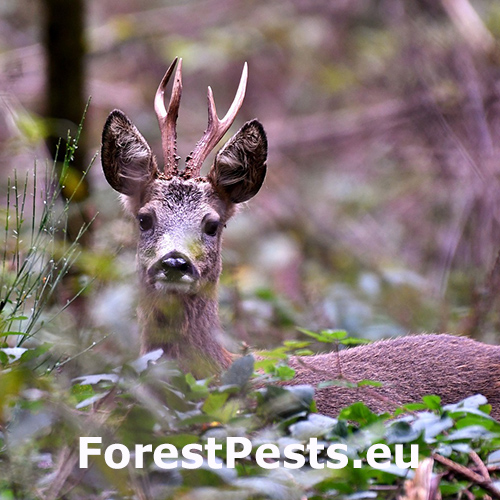 Roe deer also cause a mechanical damage to the trees when the antlers are dropped. The animal removes the top layer from the surface of the antlers by rubbing the trunks of the trees. Due to this activity, the trunks are stripped of bark, the branches can be considerably damaged or even broken.
