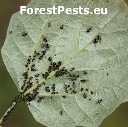 Aphids, 2-3 mm in length, color brown or dark green to black. Young stages green with black pattern. It lives in a colonies situated on the tips of young shoots or leaves petioles, less often also at the underside of leaves. Colonies are intensively attended by ants. They are harmful in forest stands and also on trees in an urban environment. They occur abundantly in the months of May - June. Similar damages are caused by Ch. populialbae.