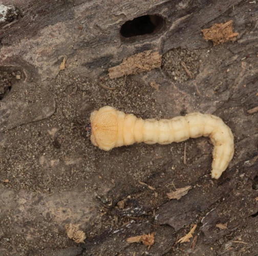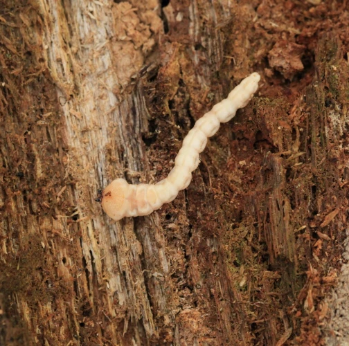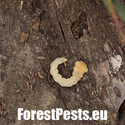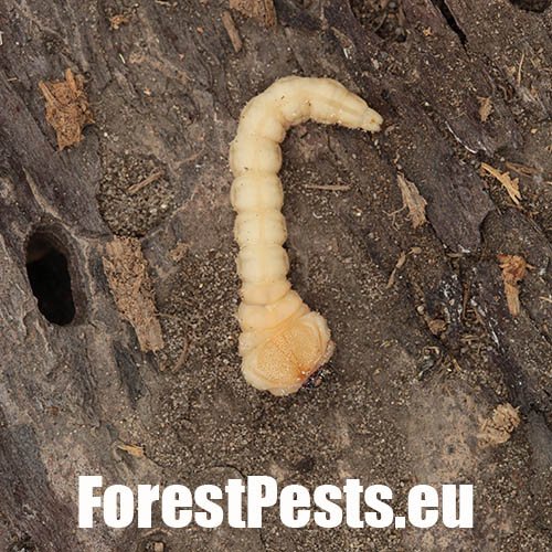Galleries under the bark. Exit holes of 1,0 x 0,5 mm in size. The larva is white, up to 70 mm long, legless.