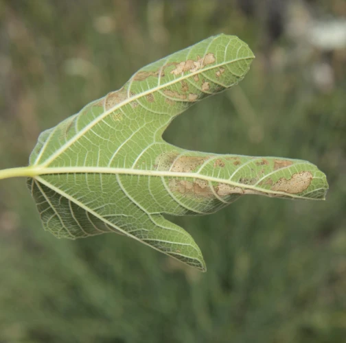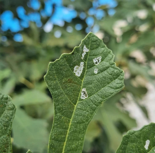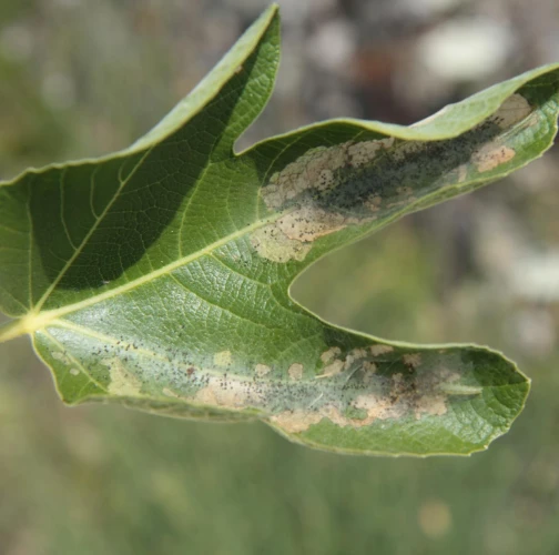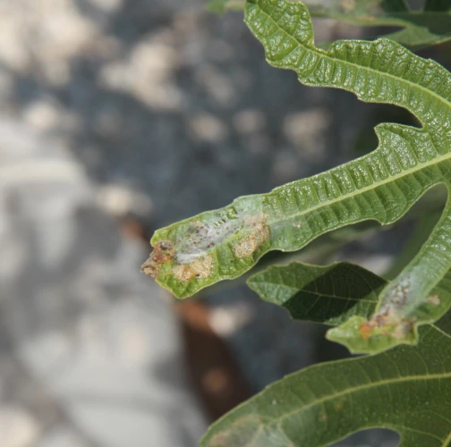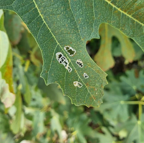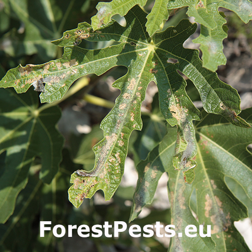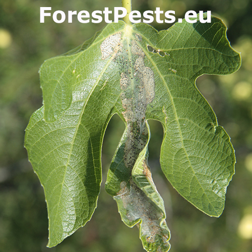Distributed across the Mediterranean, North Africa, and parts of Asia, it has recently expanded to Northern Europe. Damage is usually minor, with leaves appearing skeletonized and rolled. Severe infestations may reduce leaf aesthetics but rarely affect tree vitality.