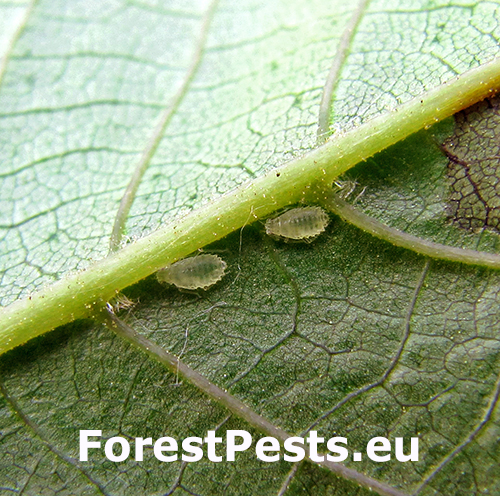 Chromaphis juglandicola, known as the small walnut aphid, is a sap-sucking insect found on the underside of walnut (Juglans spp.) leaves. It forms dense colonies and secretes large amounts of honeydew, which supports the development of sooty mould. These visual effects reduce the ornamental value of trees, particularly in urban and park plantings. The species is widely distributed across Europe and often appears in warm, dry seasons. While the intensity of infestation is usually low, heavy aphid populations can reduce photosynthetic capacity and lead to a decline in overall tree vitality.