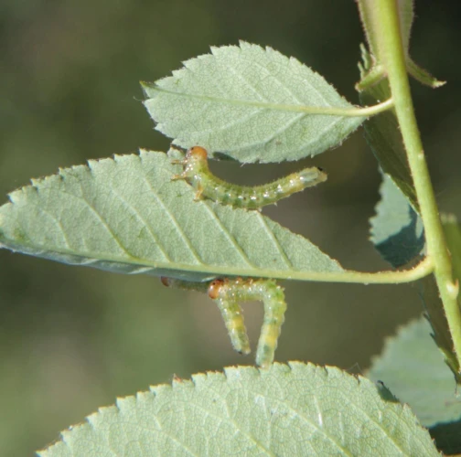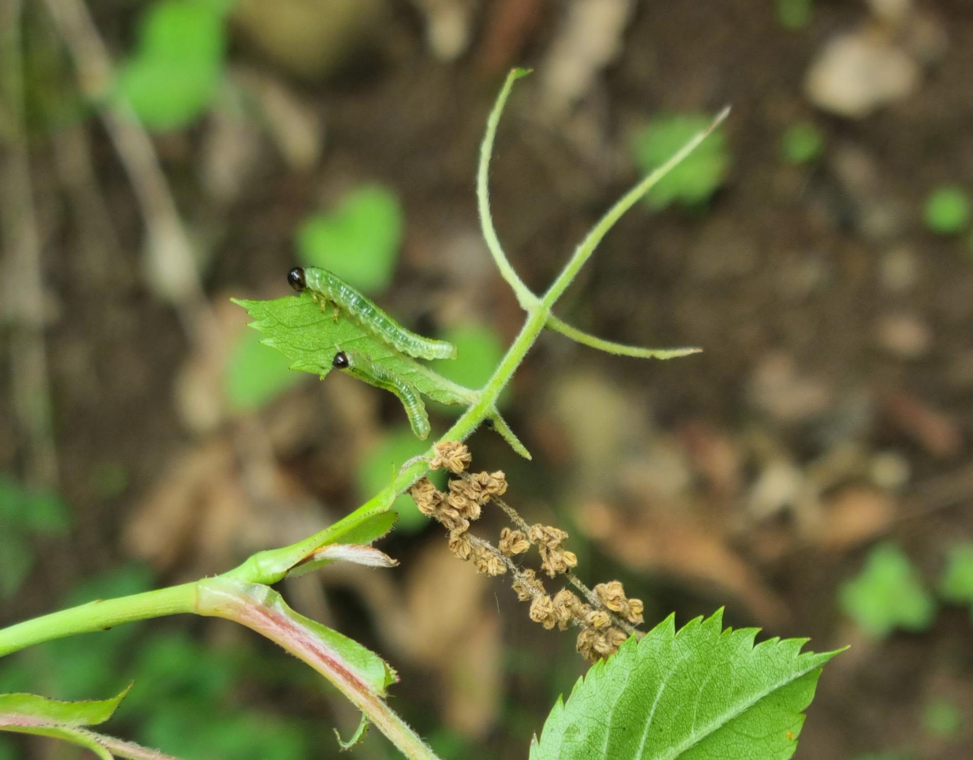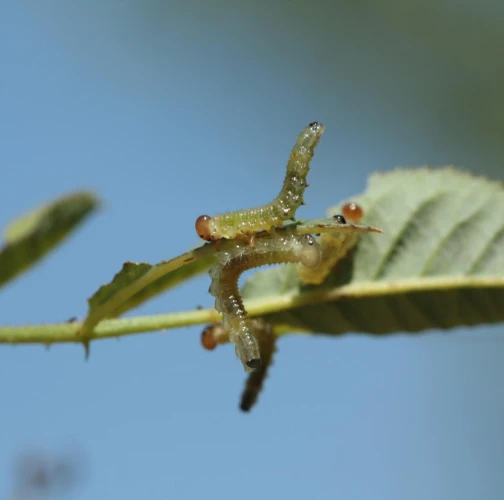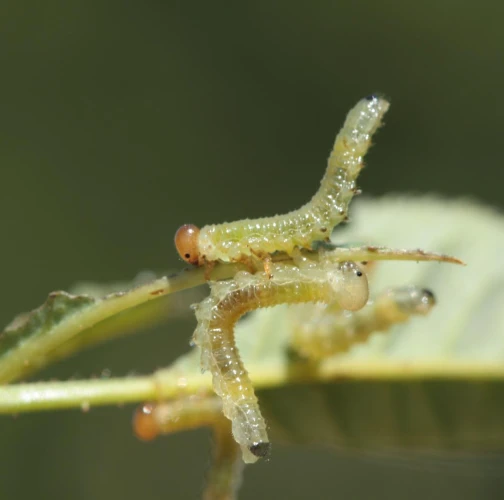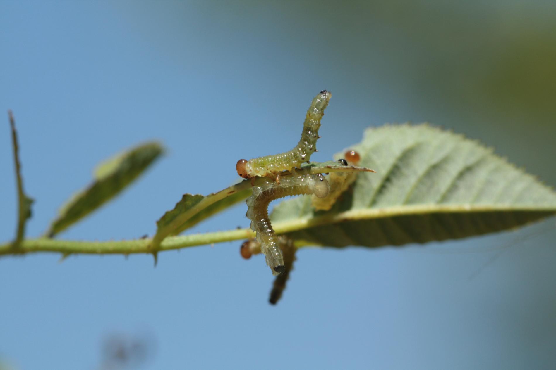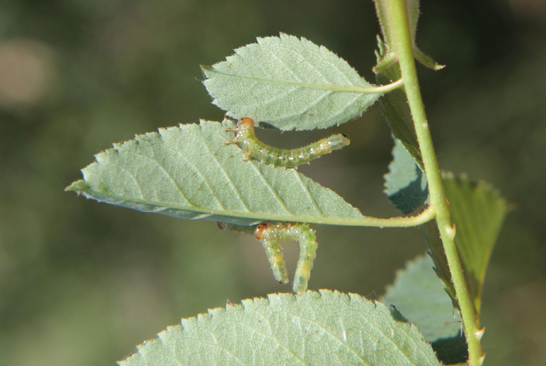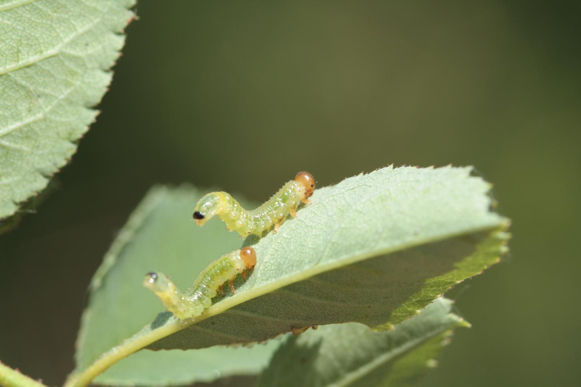 Green larvae with brown to brown black head.