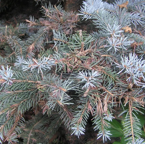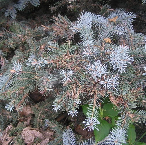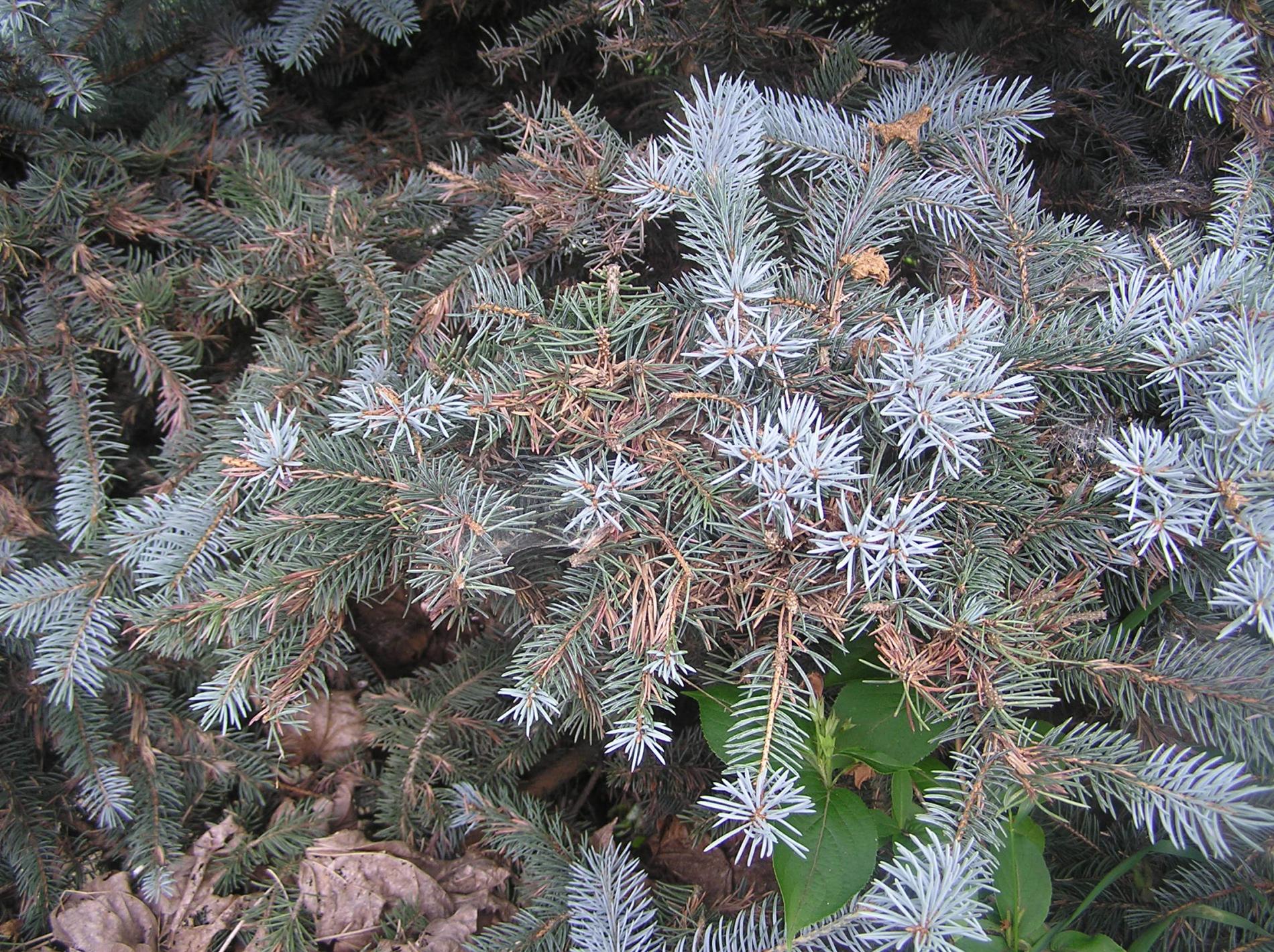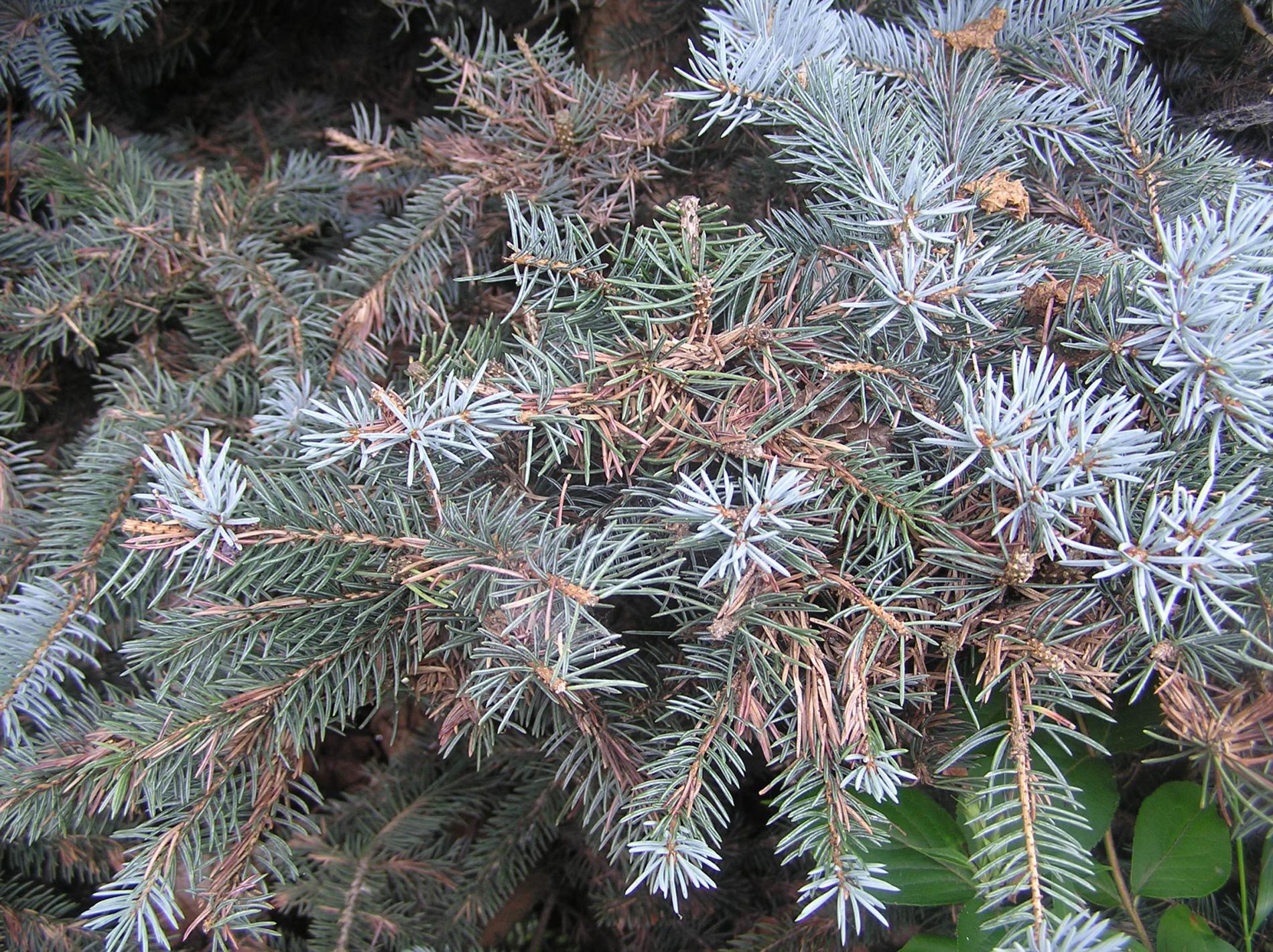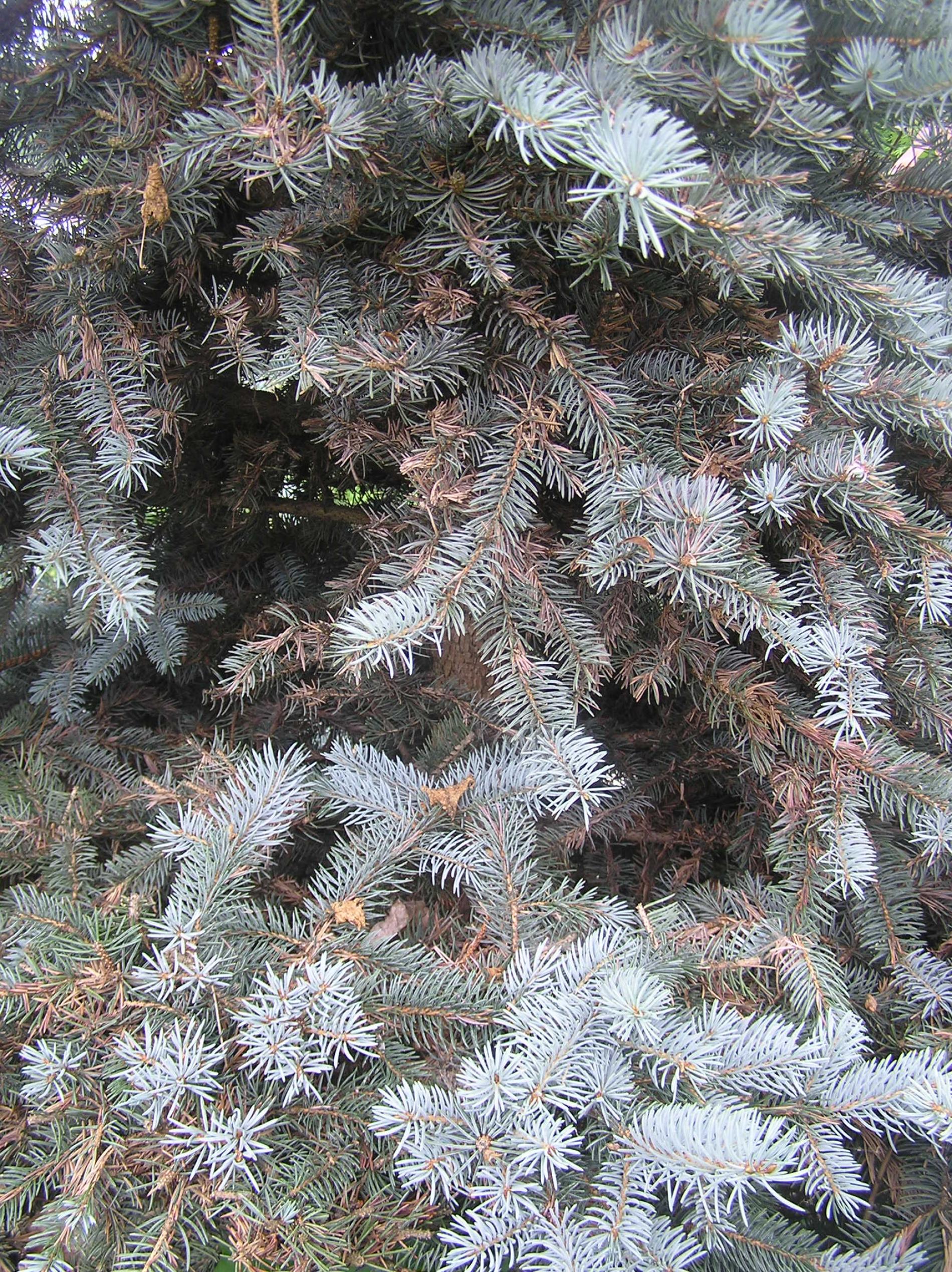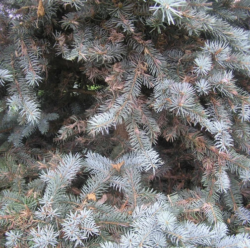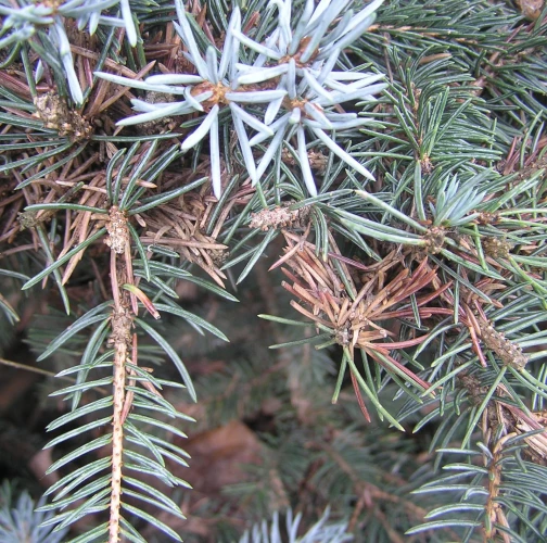 Needles spun and attached to a twig. A small hole in each damaged needle.