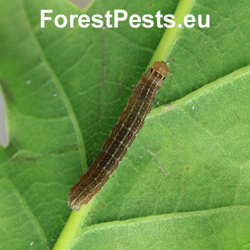 Very variable coloration. Usually gray-brown with an irregular indistinct pattern. Wingspan approx. 8-36 mm. It flies from autumn to spring during warmer days. In the spring, caterpillars live on various trees, abundantly in oaks or birches.