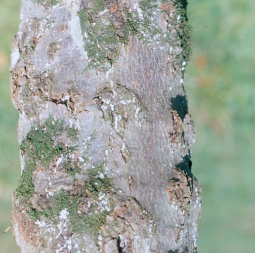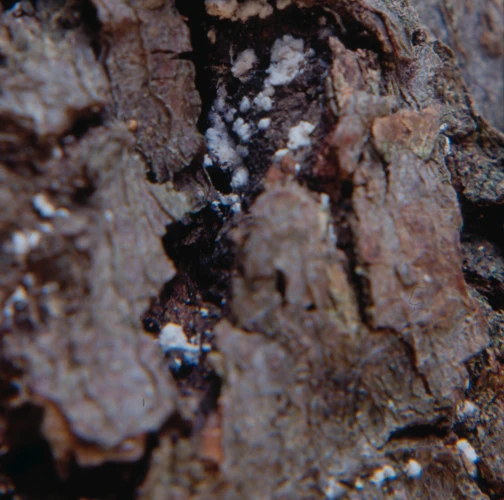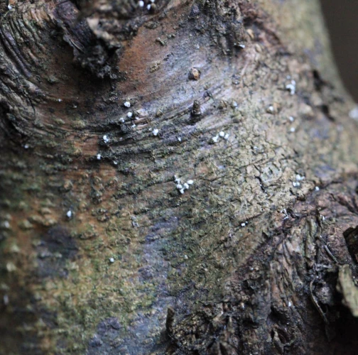 White coatings on the trunks, often very indistinct, only visible as small white dots.