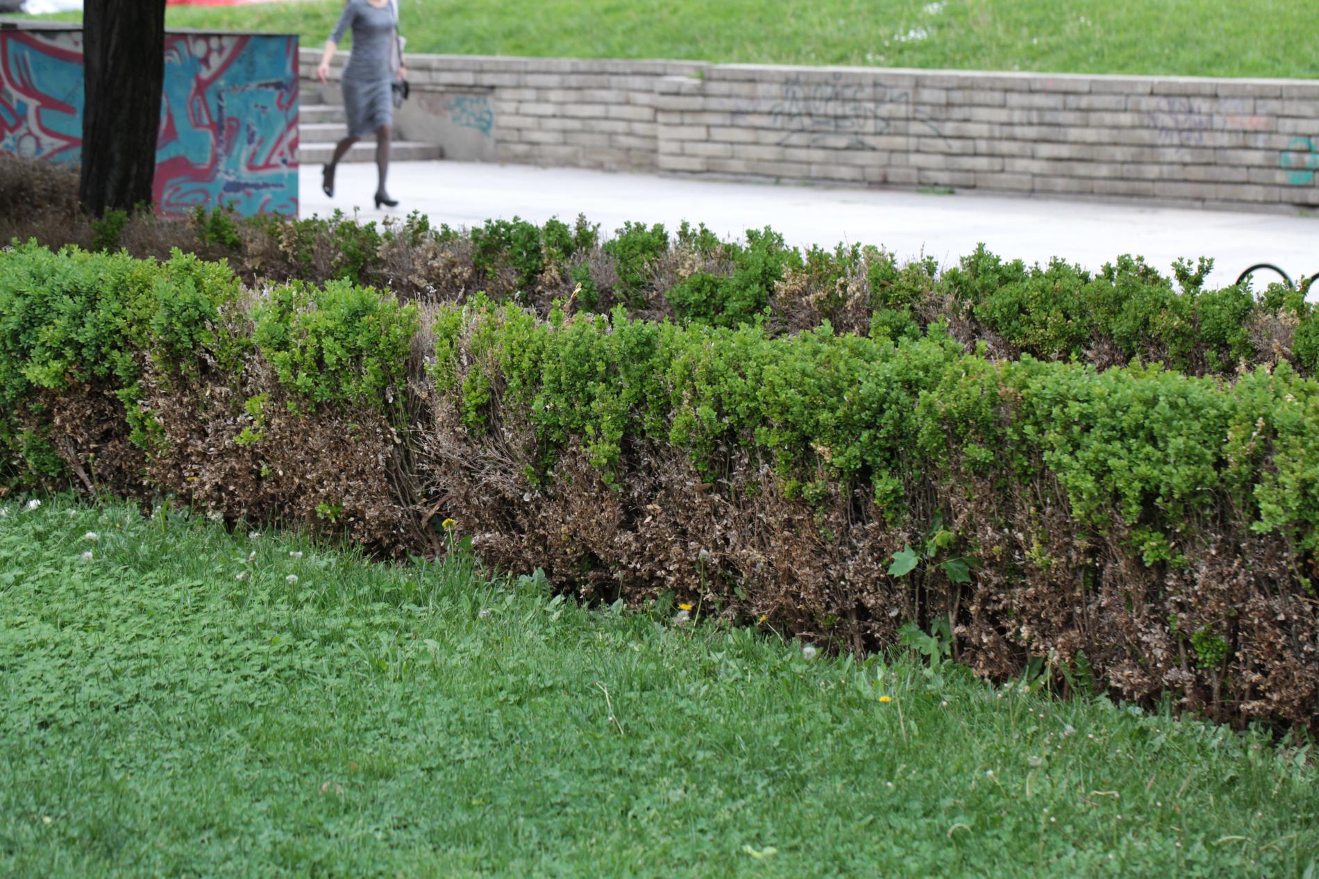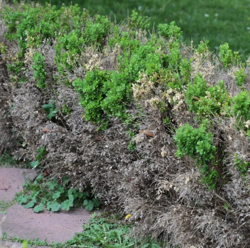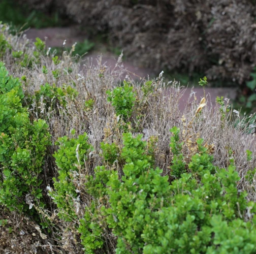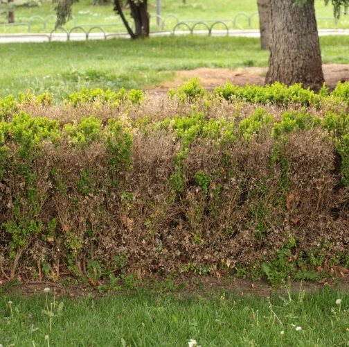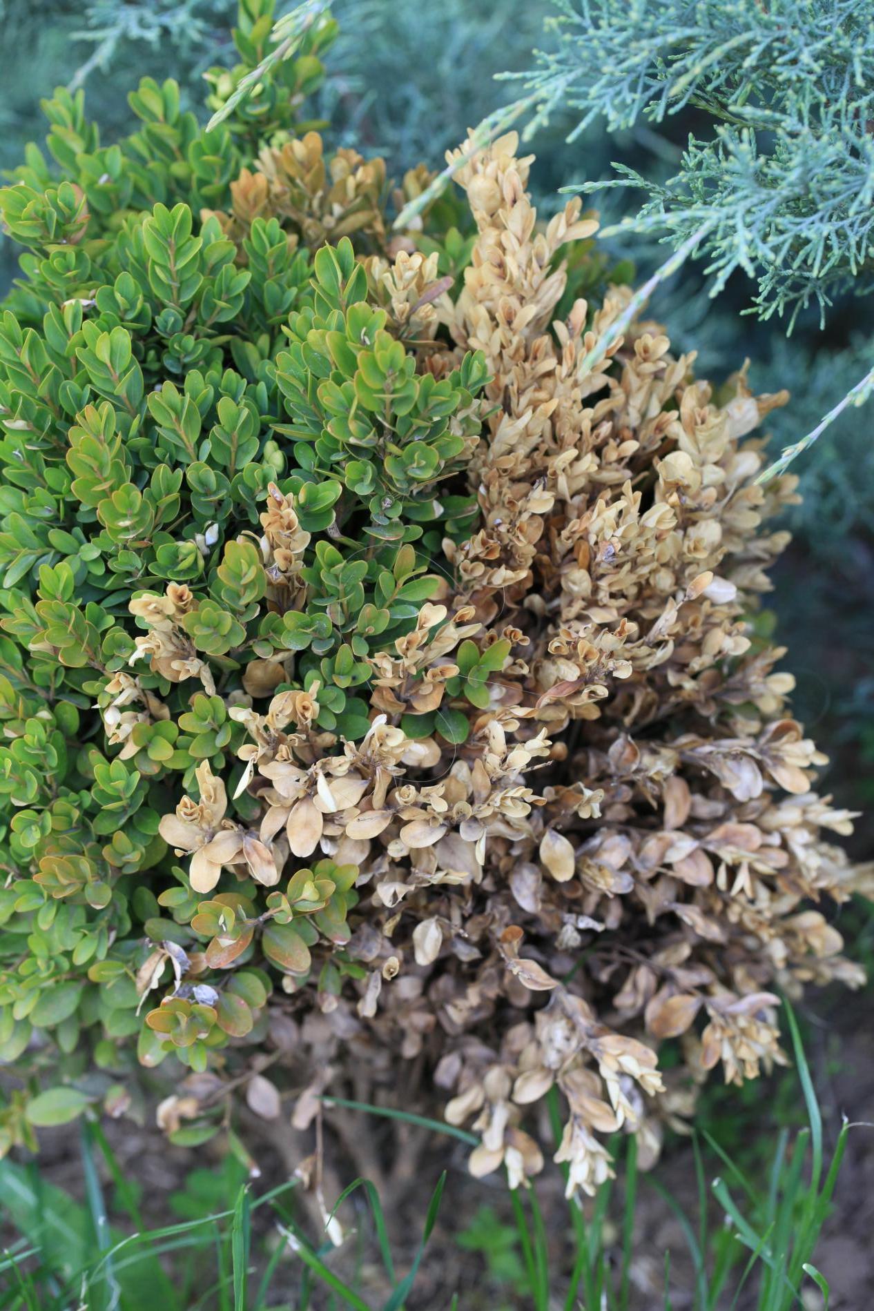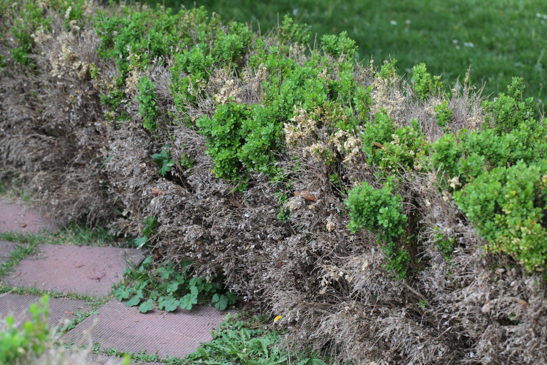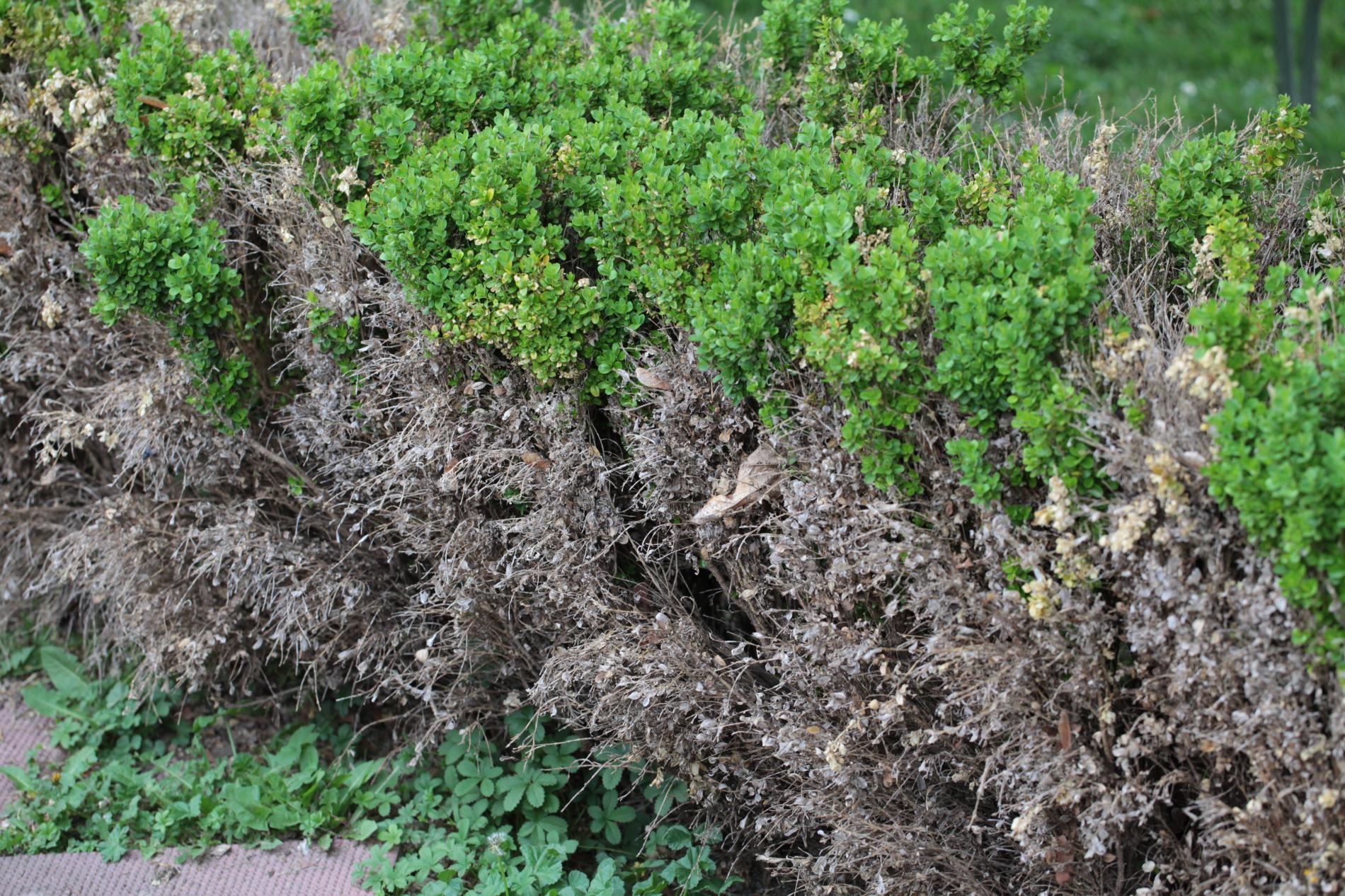 Boxwood blight (Cylindrocladium buxicola, also known as Calonectria pseudonaviculata) is a destructive fungal disease affecting boxwood plants (Buxus spp.). It causes leaf spots, defoliation, and stem lesions, leading to significant plant damage and sometimes death. The disease thrives in moist, warm conditions and spreads through infected plant material, tools, or water splashes. Effective management includes sanitation practices, fungicide application, and the use of resistant boxwood varieties. The fungus produces spores (conidia) that spread through water, wind, or contaminated tools. Spores land on boxwood leaves or stems in warm, moist conditions and penetrate the plant tissue. The pathogen grows, producing more spores that can infect surrounding plants. It survives in plant debris or soil over winter, waiting for favorable conditions to restart the cycle.