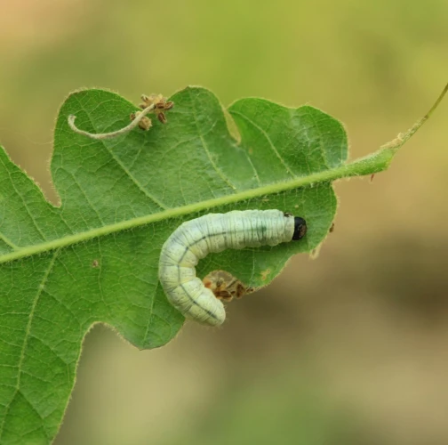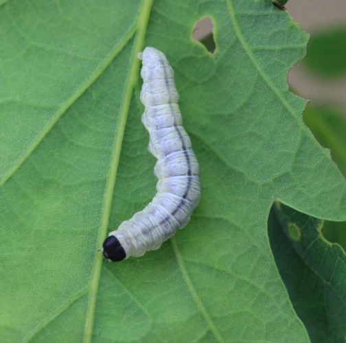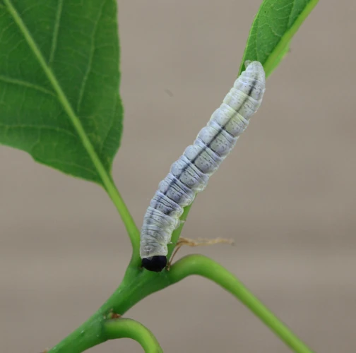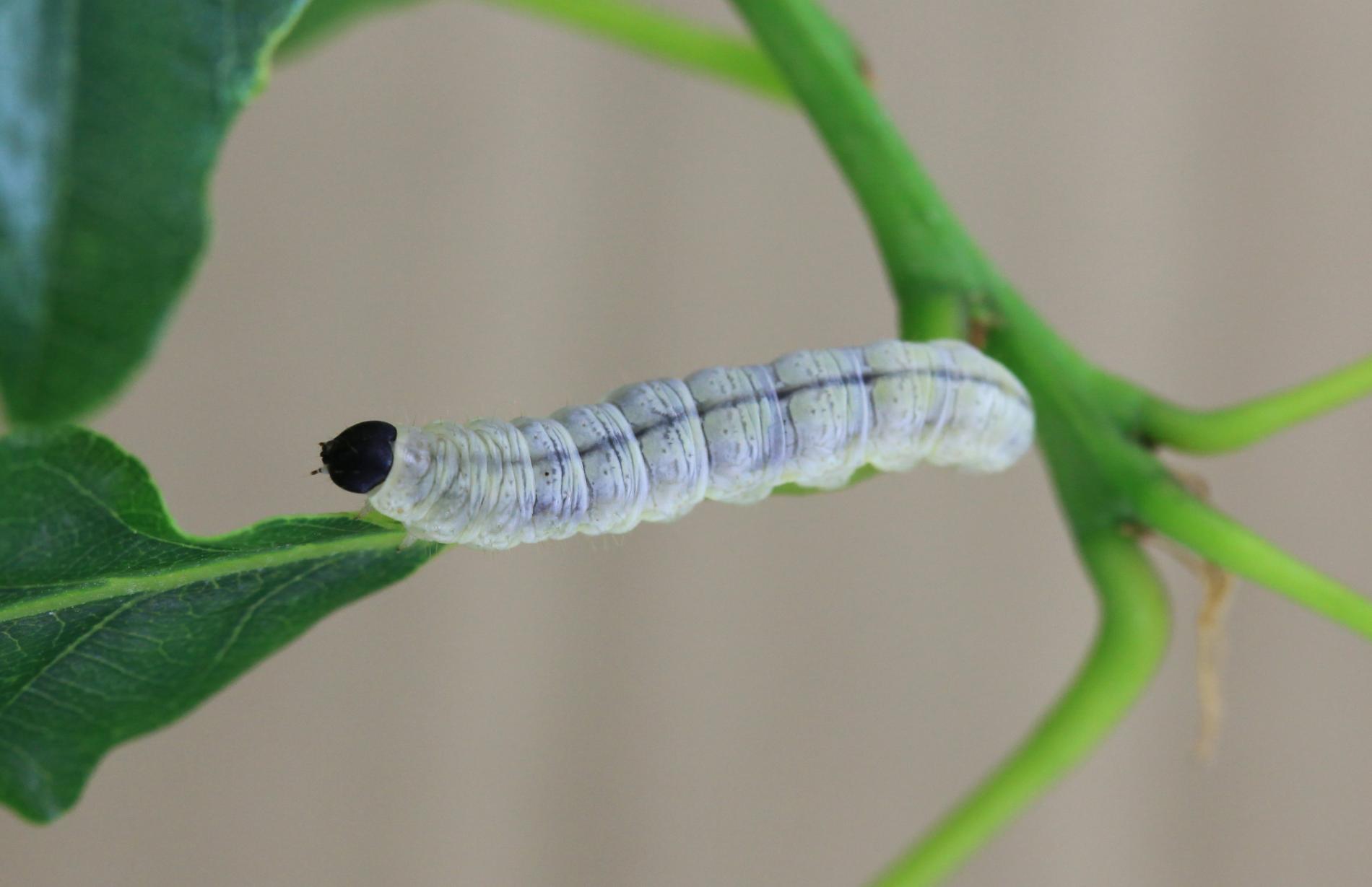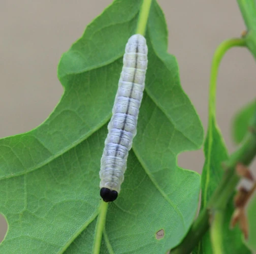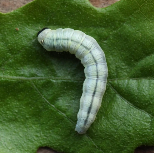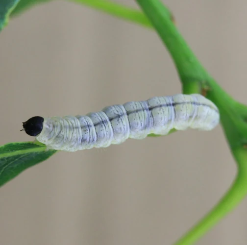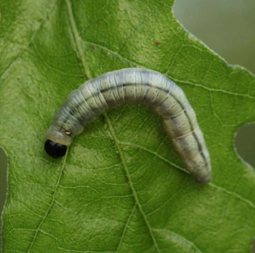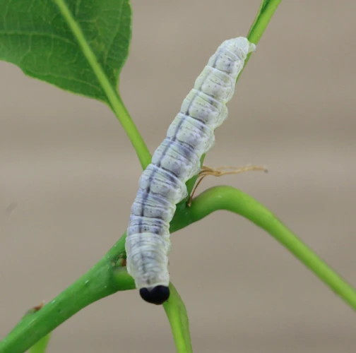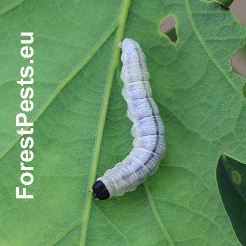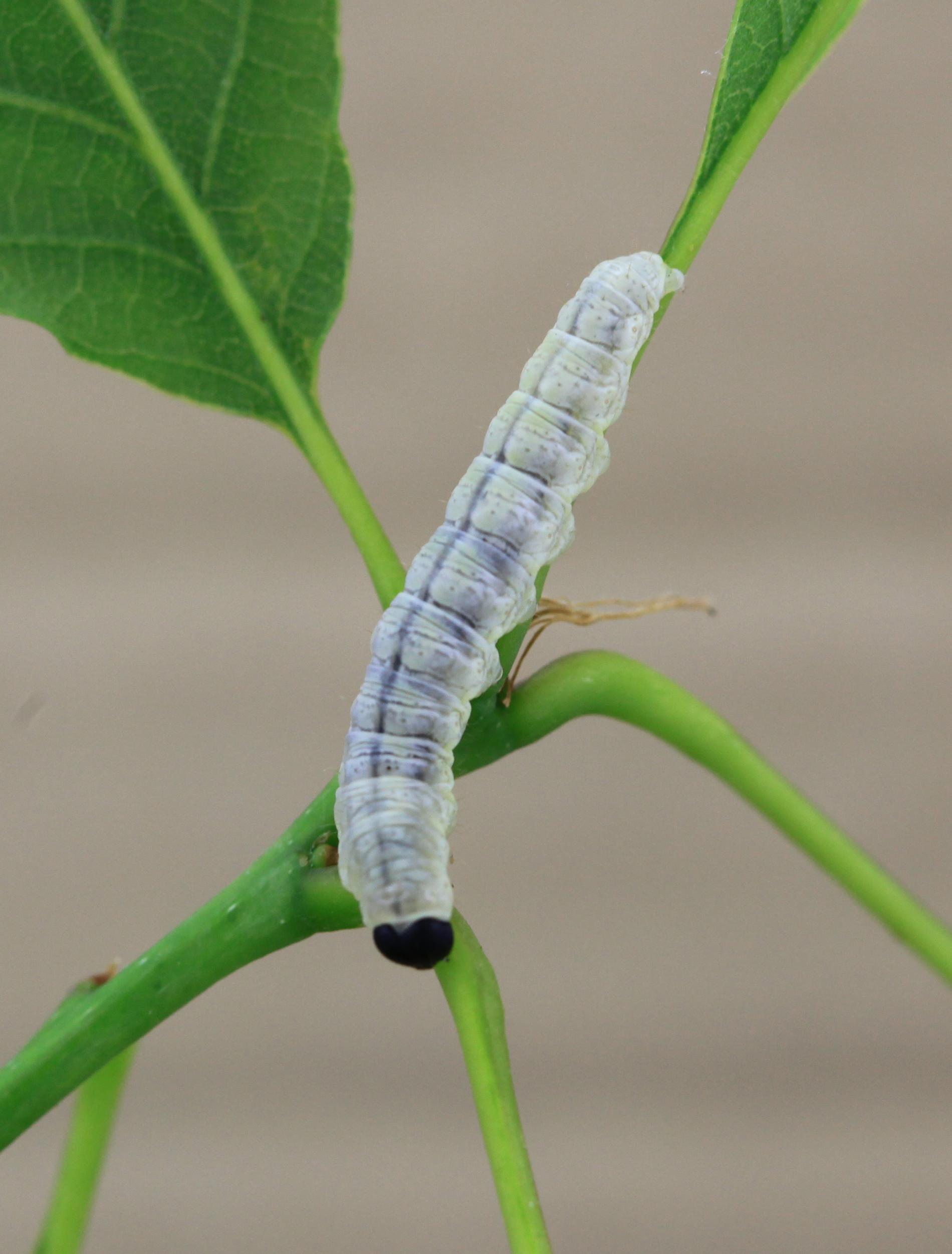 Larva 30-35 mm in length, dull greenish-whitish-yellowish, dorsal line darker, head and spiracles black.