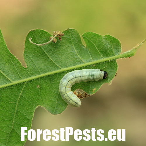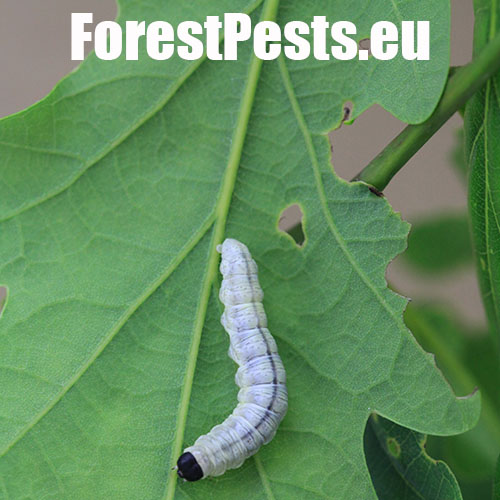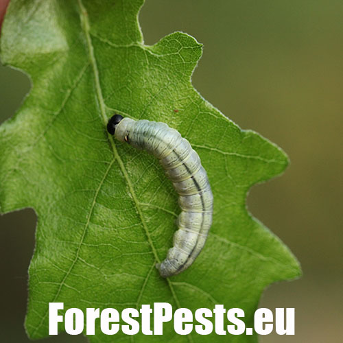 Wingspan 33-35 mm, ground colour grey-brownish with two darker brown stripes in central part of forewings. Larva 30-35 mm in length, dull greenish-whitish-yellowish, dorsal line darker, head and spiracles black. Lateral line little paler. Larva feeds on Quercus spp., on low and bushy trees, hibernation as egg. Margins of warm oak stands, forest steppes. In south of Europe, not rare.