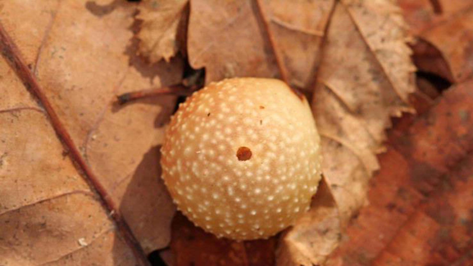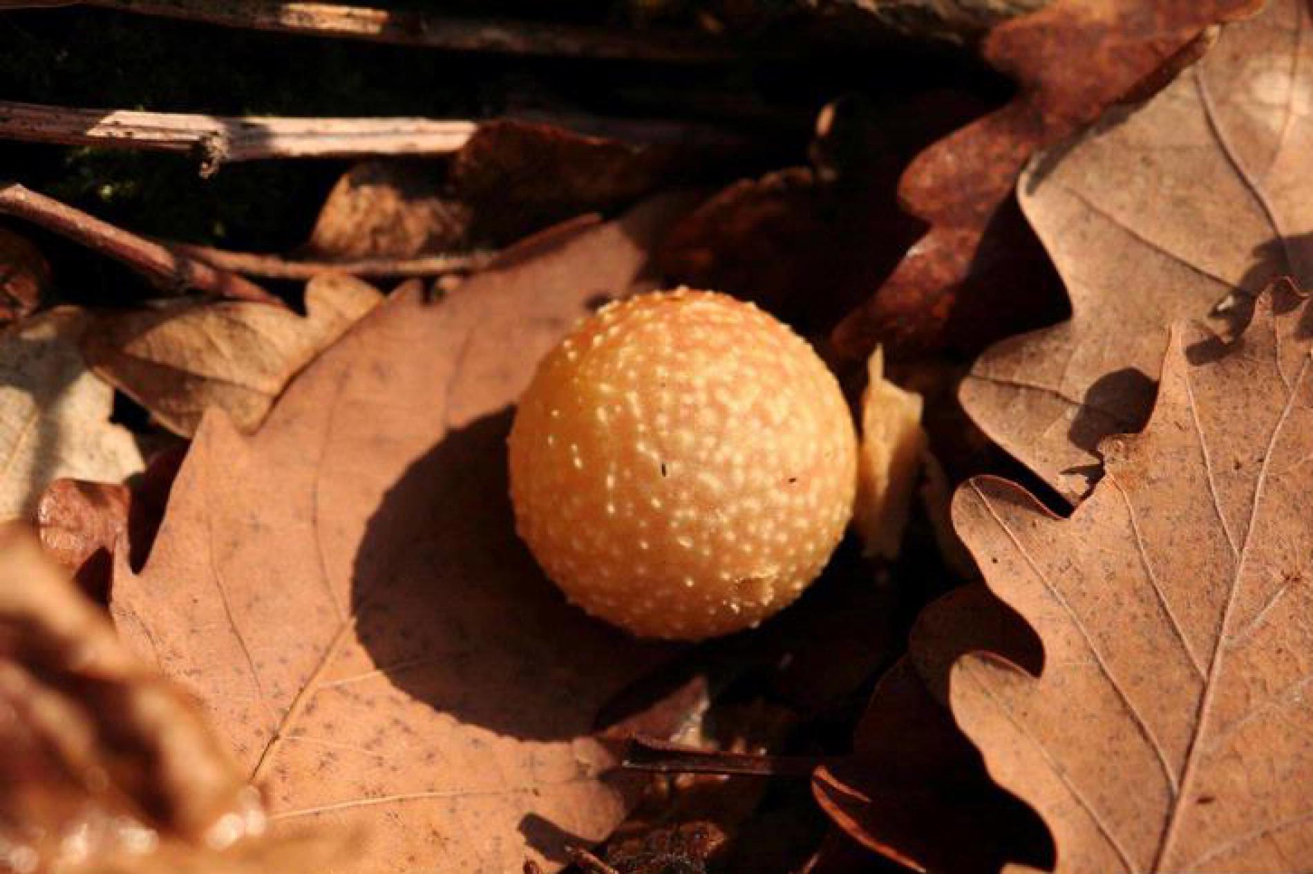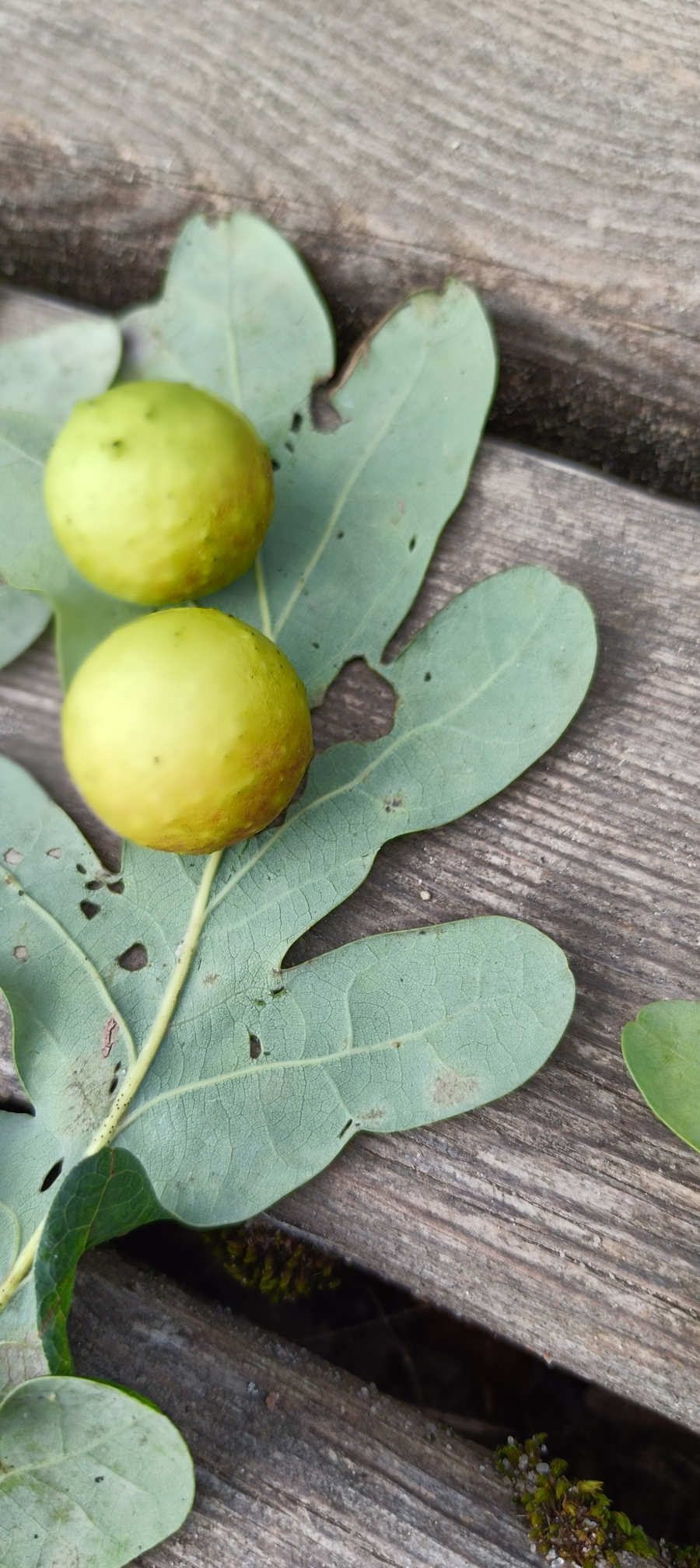 The gall is about 15-25 mm in zize, small ball-like, found on the bottom side of the leaf.