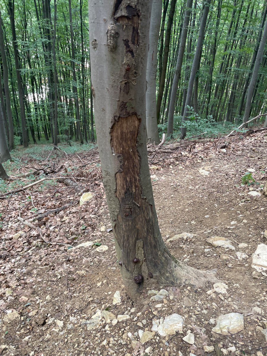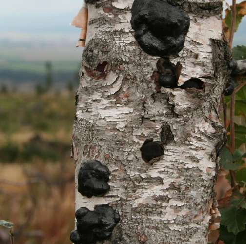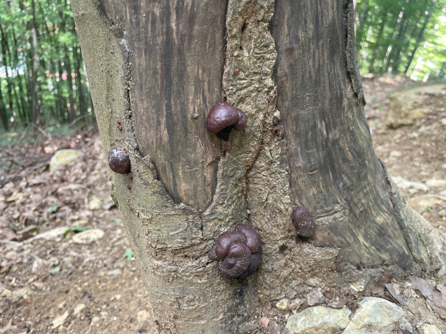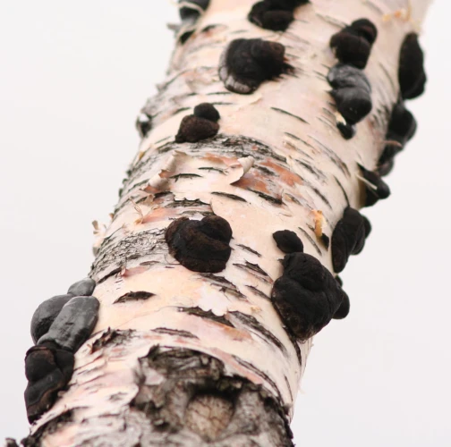dead wood, especially beech and ash. Season all year. This common fungus is very hard and carbonaceous, much like a lump of coal. When you section Daldinia concentrica through the middle, you can see concentric zones. These zones each represent a season’s growth of reproduction. The small bumps on the surface of the fruiting body are the necks of the perithecia. It causes a soft rot.