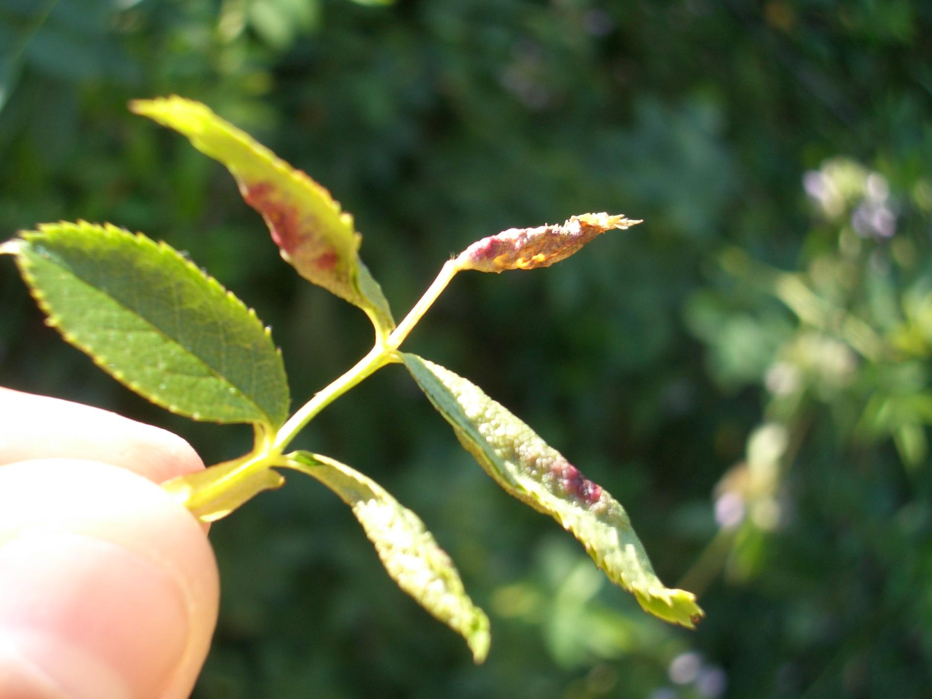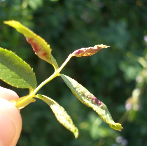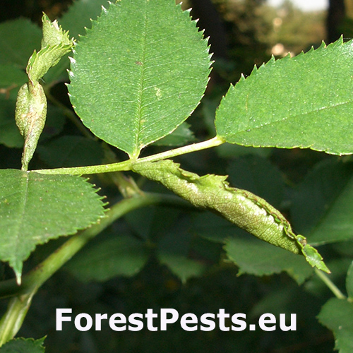 The larvae induce characteristic galls by feeding on the leaf tissue. These galls form as folded, thickened leaflets, often tinged with red, creating a pod-like structure where numerous orange larvae develop. While infestations rarely affect the overall health of robust plants, heavy infestations can lead to leaf deformation, reduced photosynthetic efficiency, and diminished ornamental value of roses, particularly in ornamental gardens and nurseries.