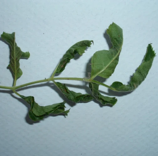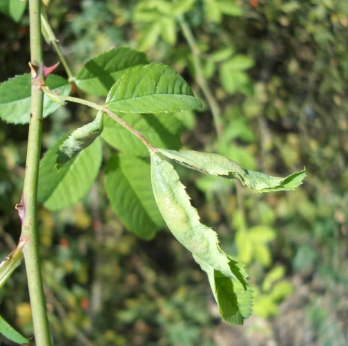 Dasineura rosae, commonly known as the rose leaf gall midge, is a monophagous insect from the family Cecidomyiidae. It specifically infests various rose species (Rosa spp.), such as Rosa canina, R. rubiginosa, R. gallica, and others. This species is widely distributed in Europe, particularly in areas where roses are cultivated or grow naturally. The insect completes two or more generations annually, with larvae pupating in the soil.