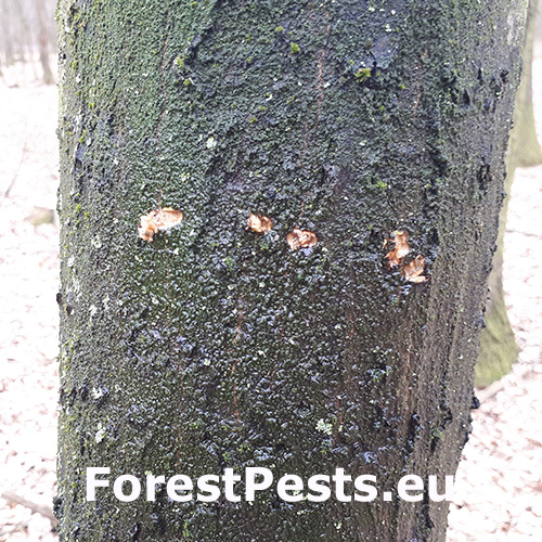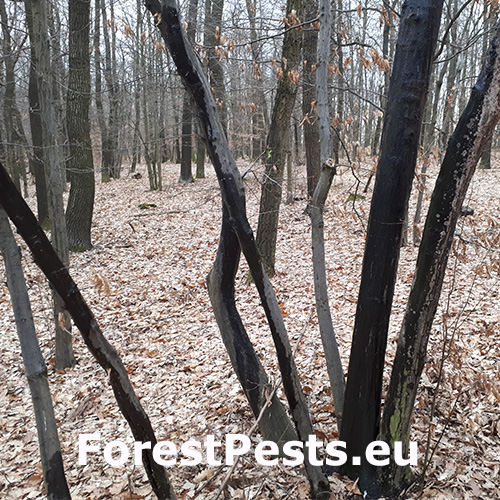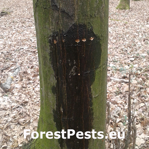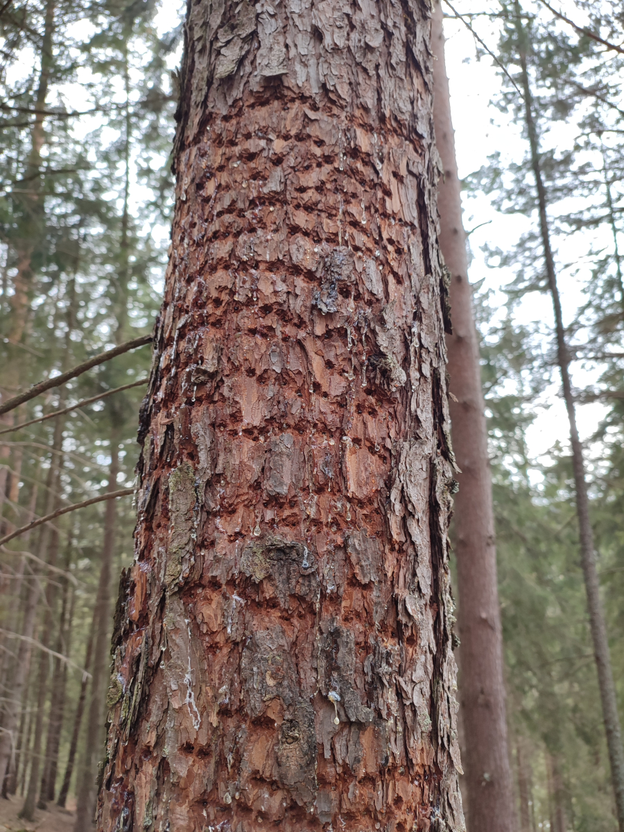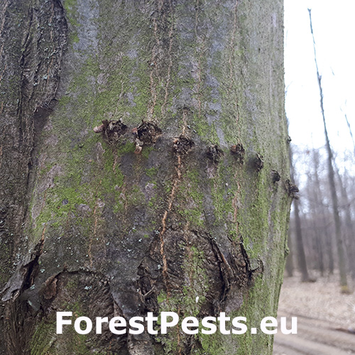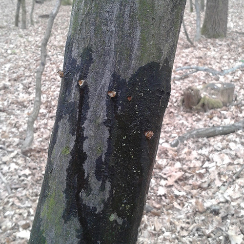 This phenomenon has long been known and is referred to in forestry terminology as the ringing of trees by woodpeckers. Holes (usually 4 - 6) are cut horizontally on healthy trees, from which sap often flows out in the spring. We have observed such behavior in a large number of Dendrocopos major and environmental woodpecker Dendrocoptes medius, but it is likely that other species of woodpecker behave similarly. The reason for this behavior is not completely known. It is believed that the flowing juice from the clover needs as a dietary supplement in the spring, but there are other explanations. Such a damaged tree usually does not die and the wounds heal later in the season. We observed ringing on the count, birch, hazel and some other woody plants.