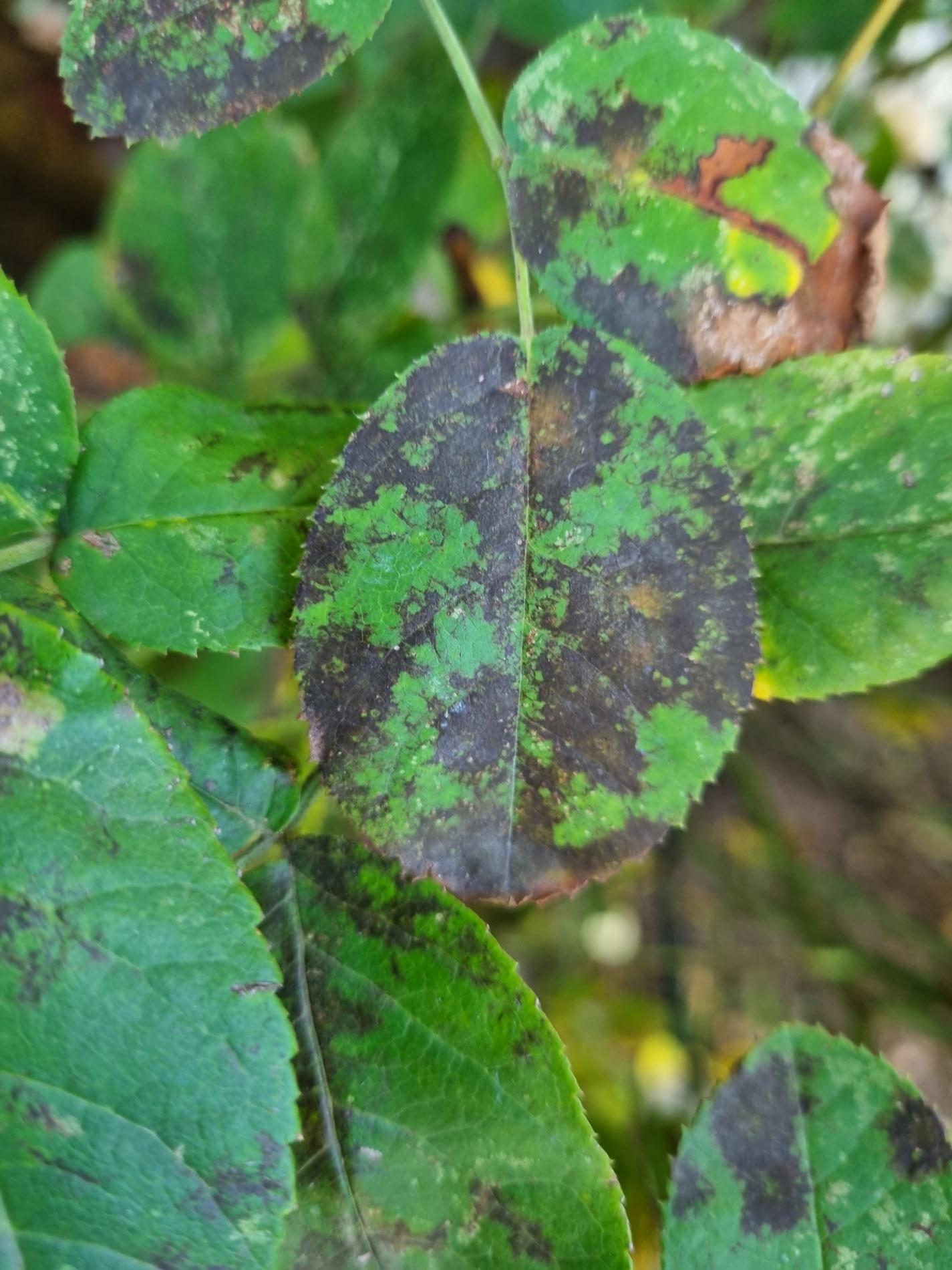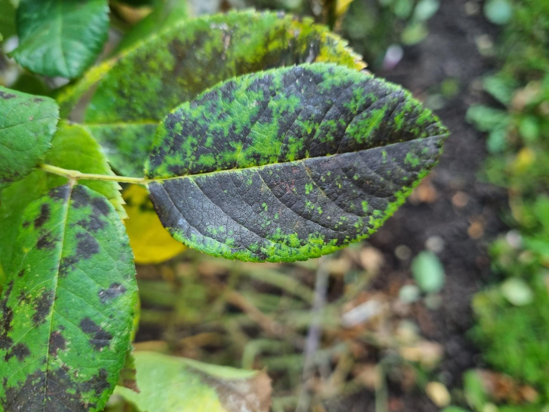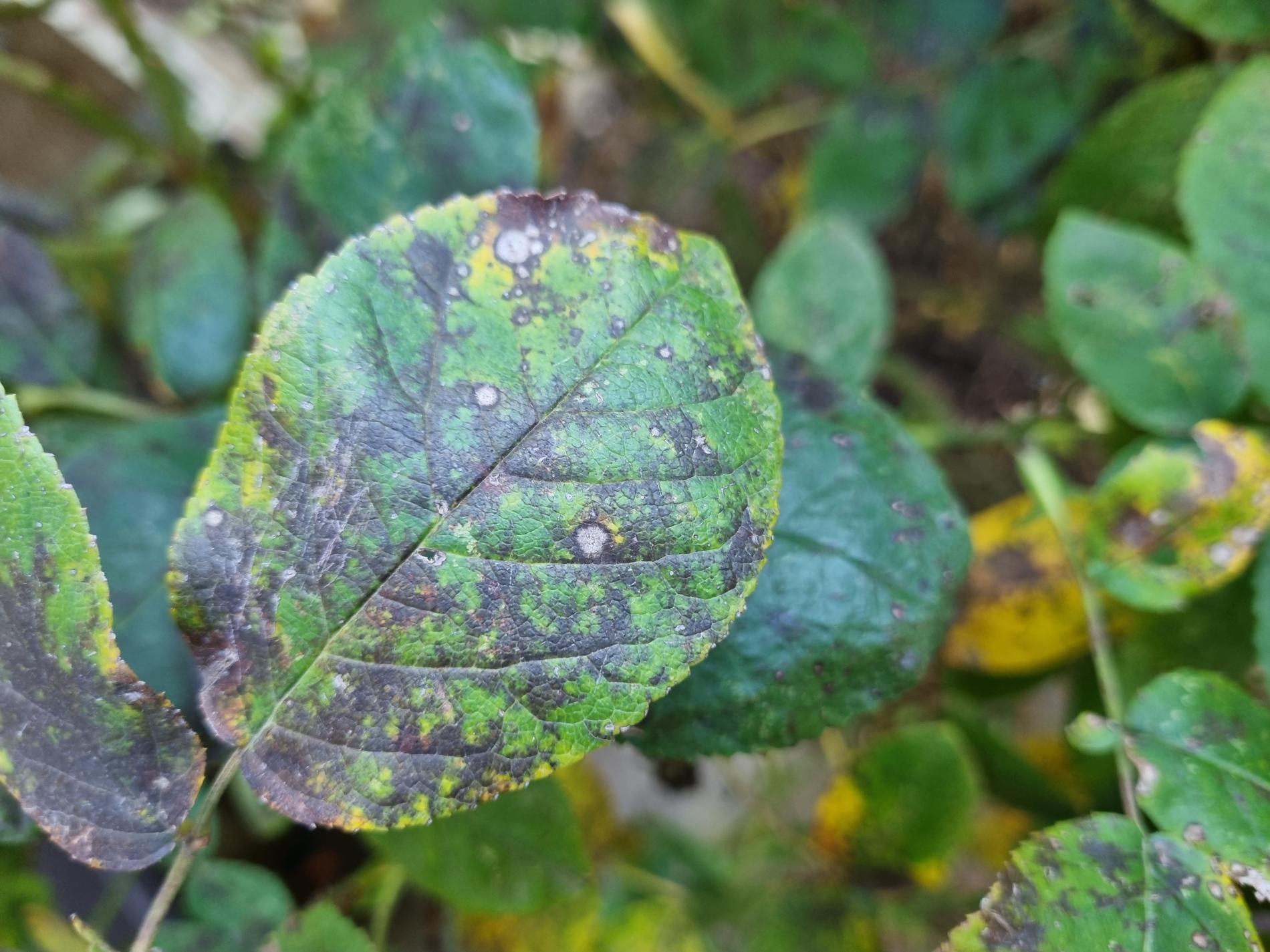 Diplocarpon rosae, also known as black spot disease, is one of the most important and widespread diseases affecting roses. The asexual stage of the pathogen is known as Marssonina rosae, while the sexual and most common stage is Diplocarpon rosae. This disease manifests as dark brown to black spots on the leaves, which gradually enlarge. As a result, the affected leaves turn yellow, dry out, and eventually fall off. If left untreated, the rose plant can lose a significant portion of its leaves, becoming weak and unattractive, with reduced flowering. Diplocarpon rosae overwinters in fallen leaves, and its spores are released in spring, particularly during wet, cool weather. Infection is most common after rainy periods or frequent overhead watering. Proper care involves watering only at the base of the plant, avoiding wetting the leaves and stems (especialy in the evening). Regular fertilization, pruning, removal of attacked (fallen) leaves, and preventive fungicide treatments starting in early spring can help manage the disease. Photinia, another member of the rose family, can also be affected by this fungus.