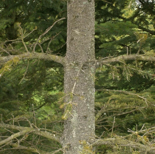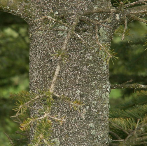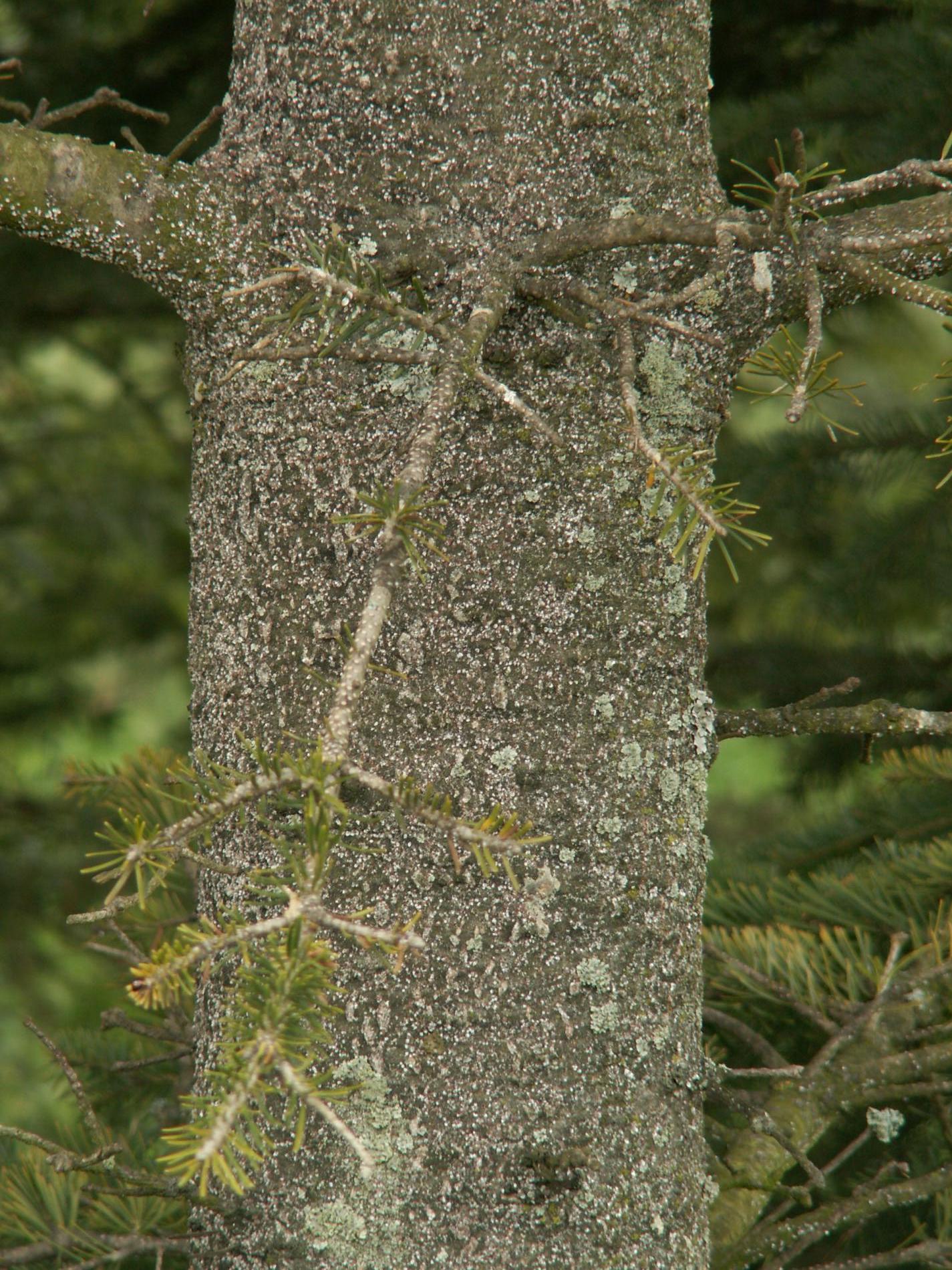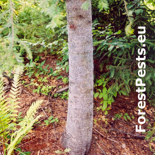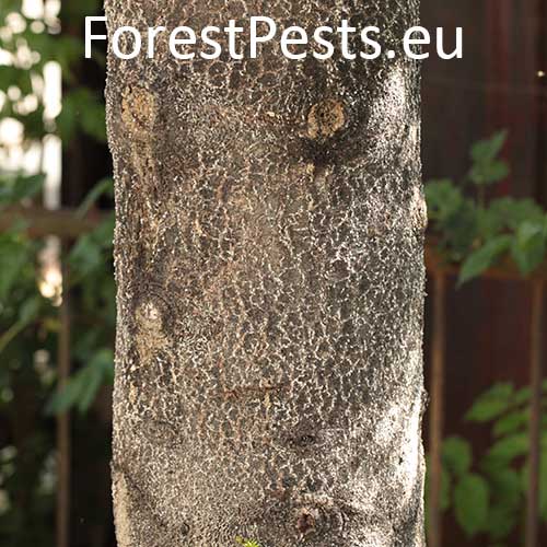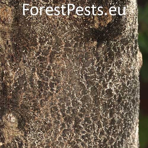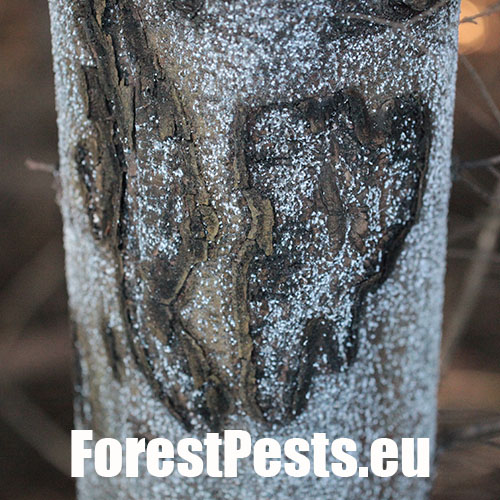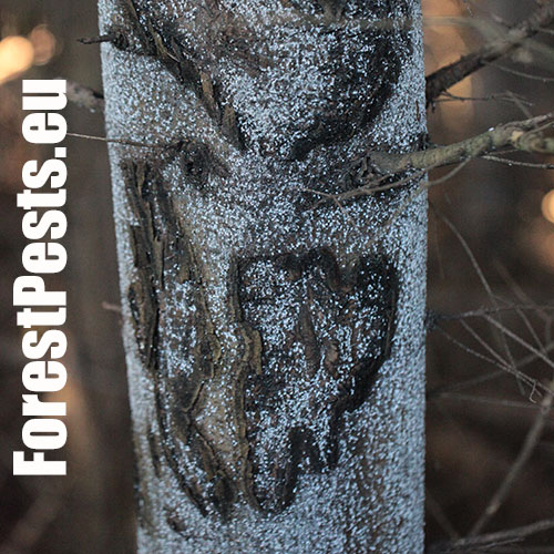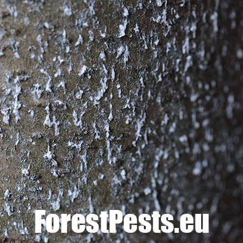 It is very similar to silver fir woolly aphid, however, it only lives on trunks of older fir trees (with a trunk diameter of about 15–18 cm at a height of 130 cm) Thus, the trunk of fir appears white as if it were sprinkled with sugar. Individuals of the progrediens generation only rarely crawl up onto needles. Generally, balsam woolly aphid is less harmful than silver fir woolly aphid. It occurs only locally but in denser and less open stands. Sometimes mass outbreaks can occur.