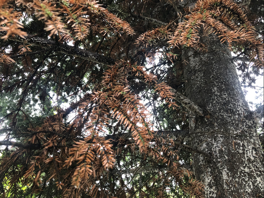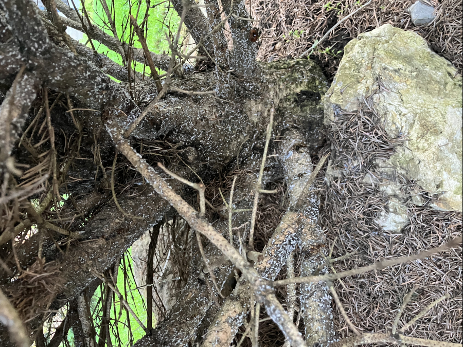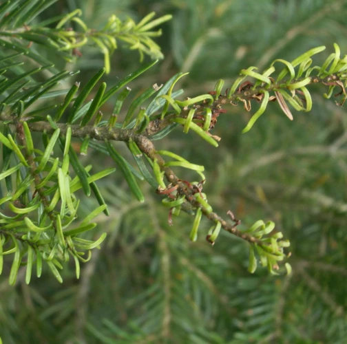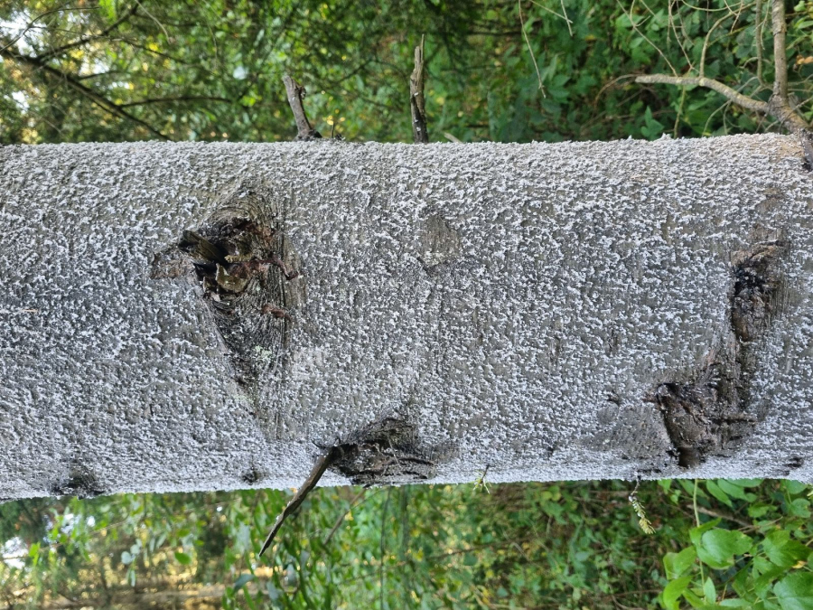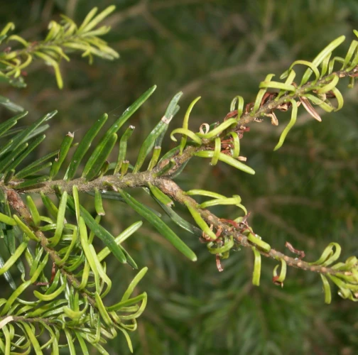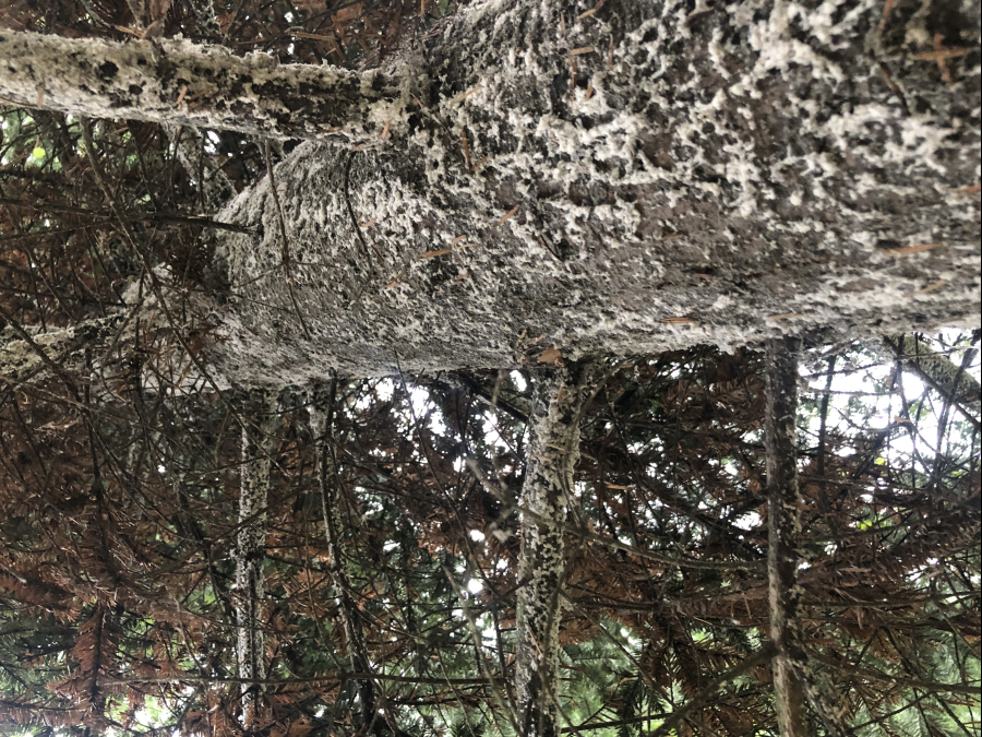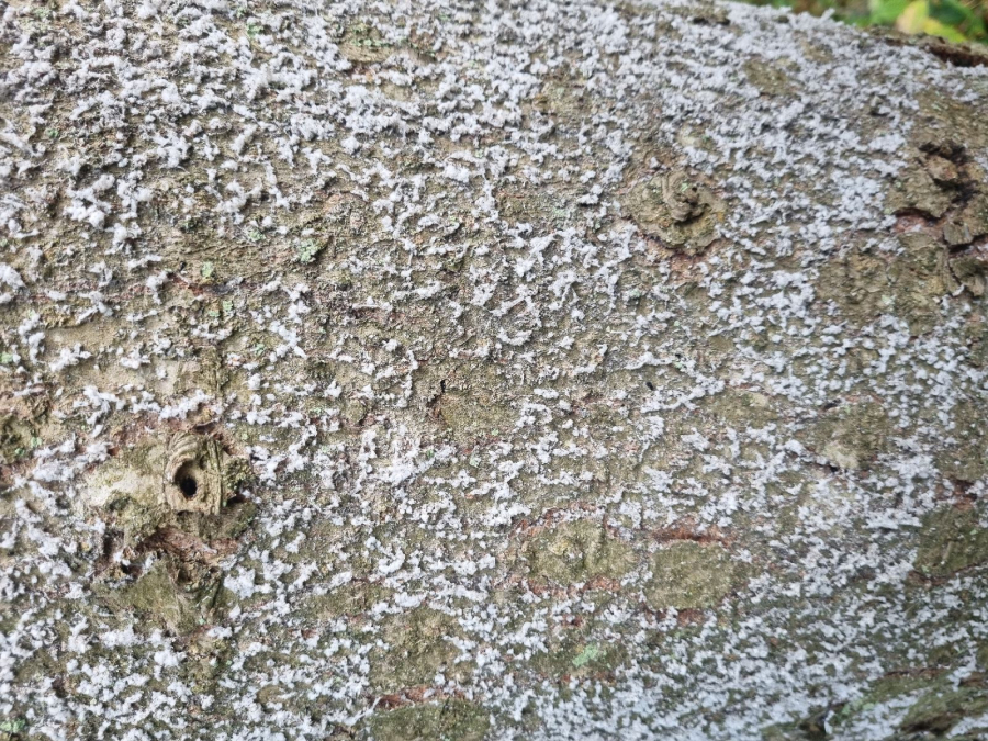 It is very similar to silver fir woolly aphid, however, it only lives on trunks of older fir trees (with a trunk diameter of about 15–18 cm at a height of 130 cm) Thus, the trunk of fir appears white as if it were sprinkled with sugar. Individuals of the progrediens generation only rarely crawl up onto needles. Generally, balsam woolly aphid is less harmful than silver fir woolly aphid. It occurs only locally but in denser and less open stands. Sometimes mass outbreaks can occur.