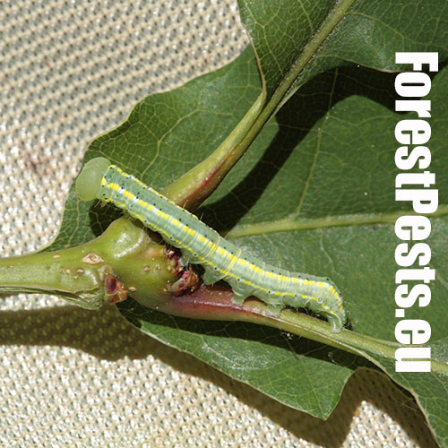 Wingspan 35-40 mm. Similar to the Marbled Brown (D. dodonaea), this species has a black crescent in the white area of the forewing. Univoltine, adults lives in 1 generation from March to June. Larvae lives on leaves from end of April until June. Narrow, distinct yellow or whitish subdorsal lines makes them relatively easy to recognize. Pupation take place in the soil. The pupa overwinters. Larva feeds on Quercus spp. Inhabiting broadleaved woodland, mainly in warmer regions, not rare. It can be very common in certain years, but does not tent to outbreak. Low economic importance. It is cgenerally not threatened. At the certain places can be negatively influenced by changing of tree structure and preferring instead of oak species some other tree species as for example beech, pine, spruce or fruit trees.
