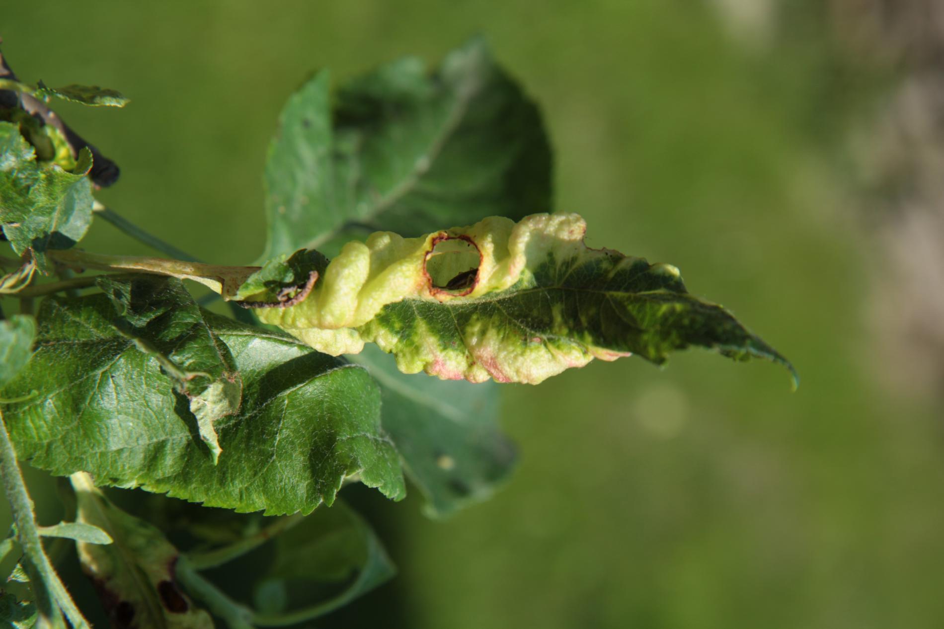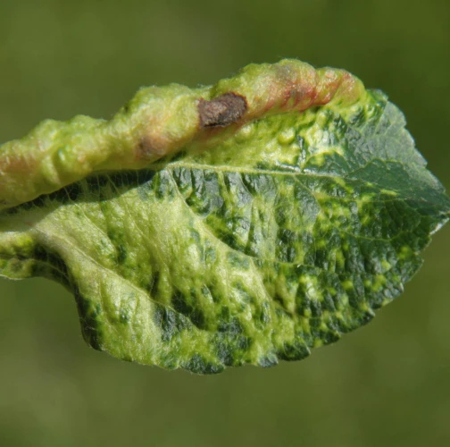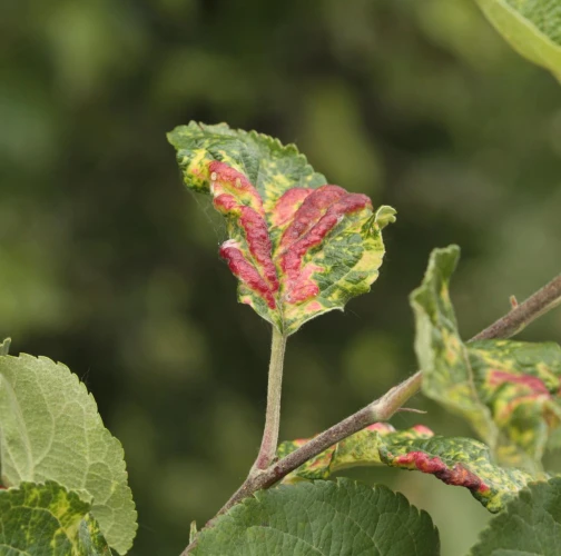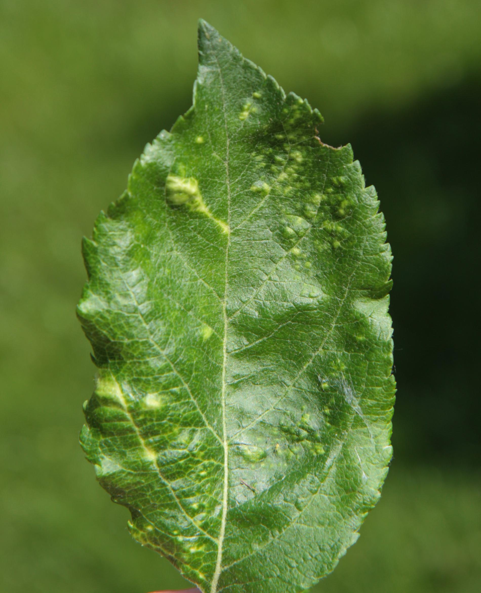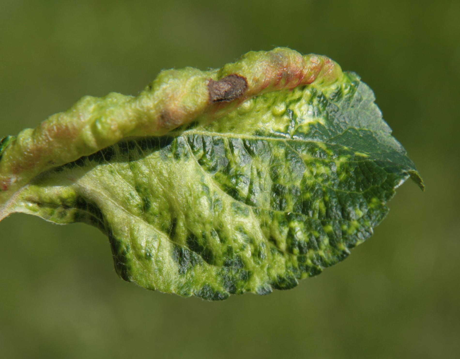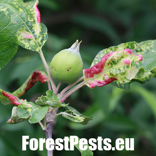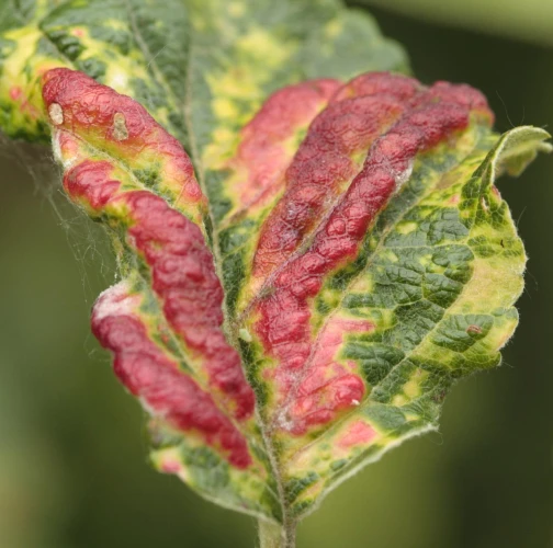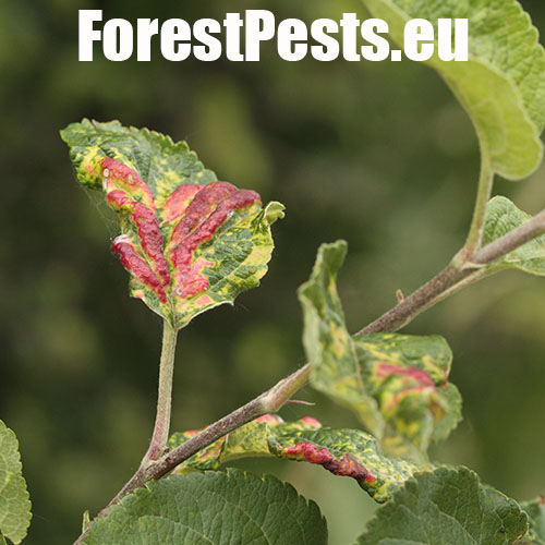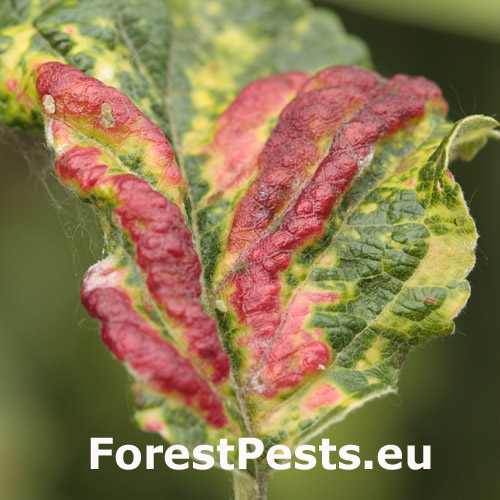 This aphid overwinters in the egg phase. In the spring, the founder creates a small gall on the leaf. Later, small aphids occur mainly on the underside of the leaves. It also has 3-4 generations a year. The leaves are deformed in various ways, yellow to red on the upper side. This causes serious damage to gardens and orchards.