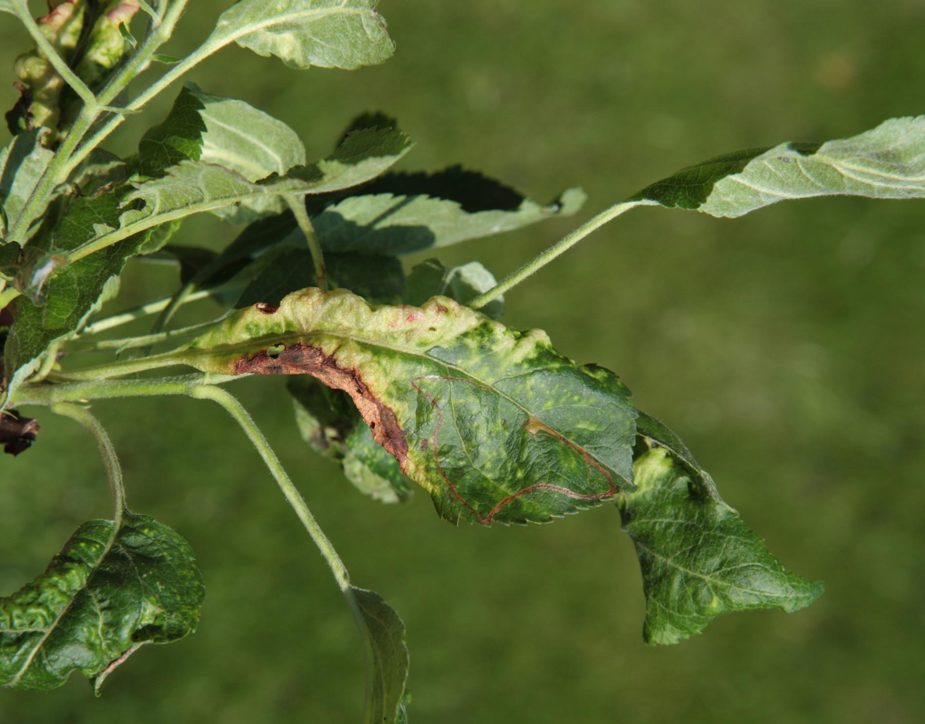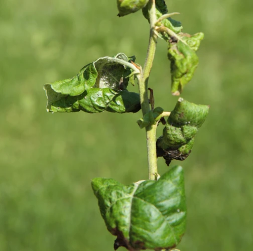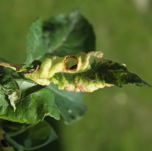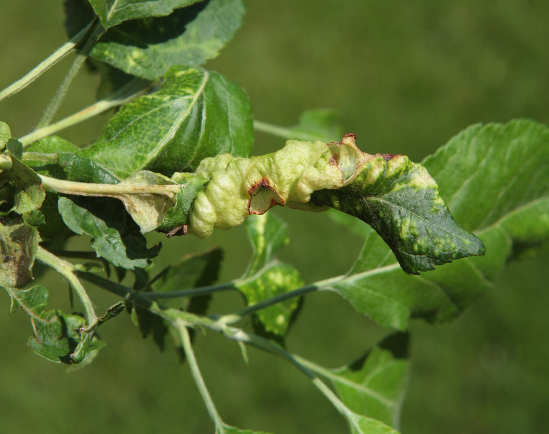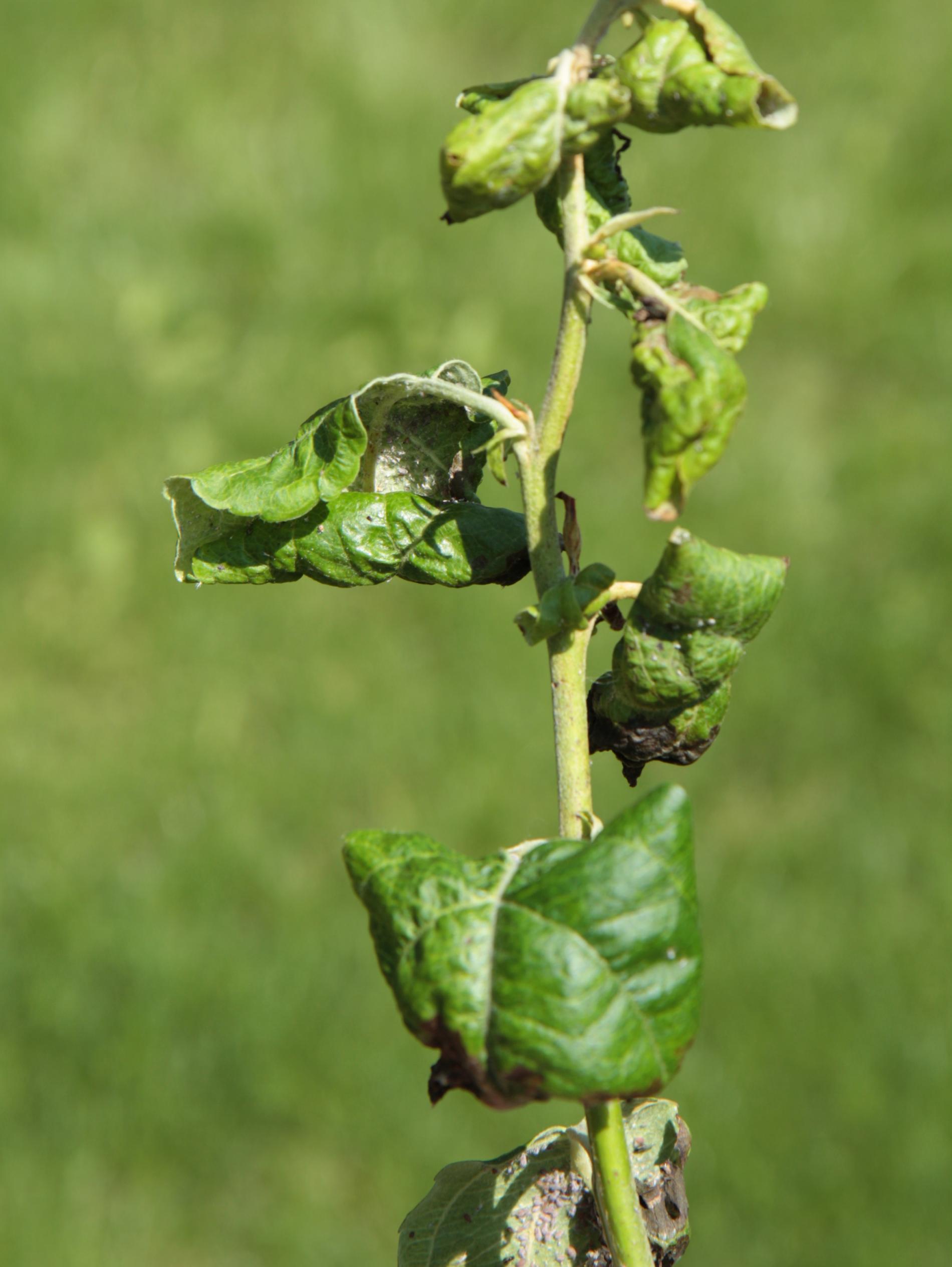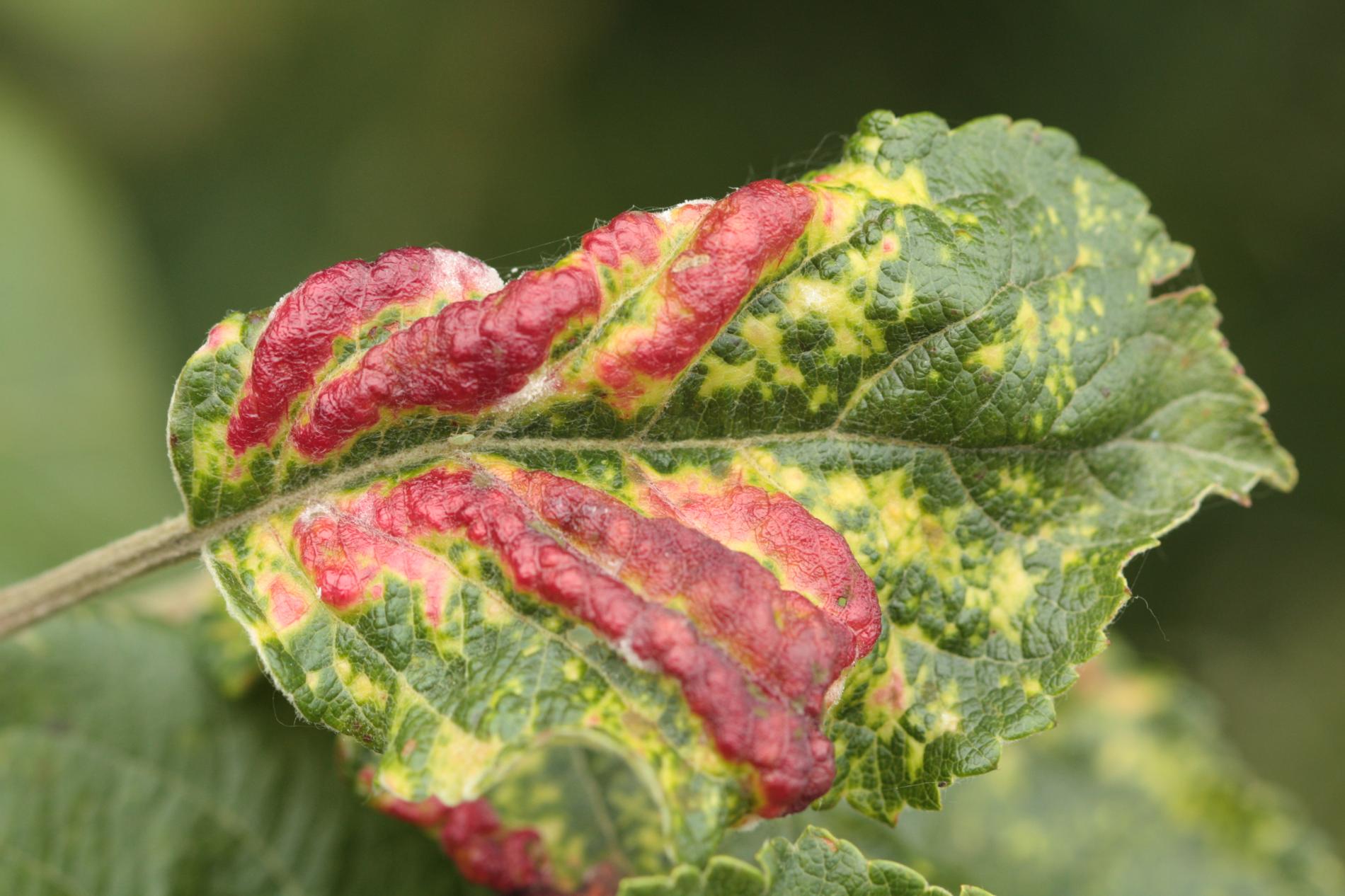 This aphid overwinters in the egg phase. In the spring, the founder creates a small gall on the leaf. Later, small aphids occur mainly on the underside of the leaves. It also has 3-4 generations a year. The leaves are deformed in various ways, yellow to red on the upper side. This causes serious damage to gardens and orchards.