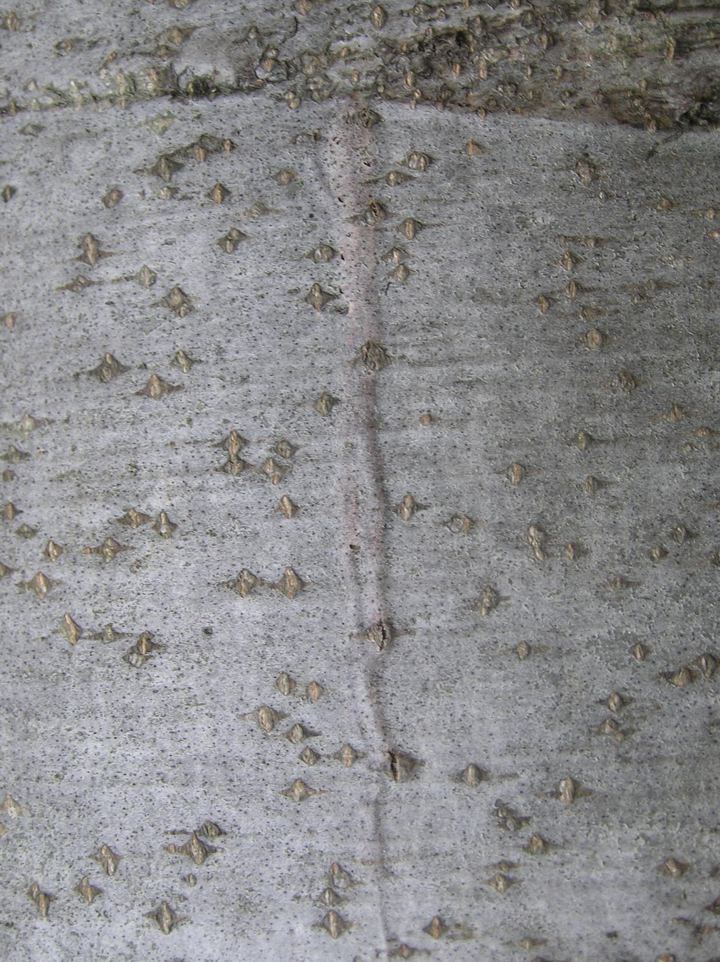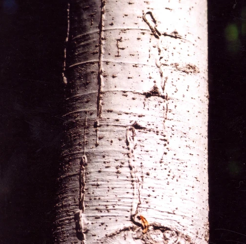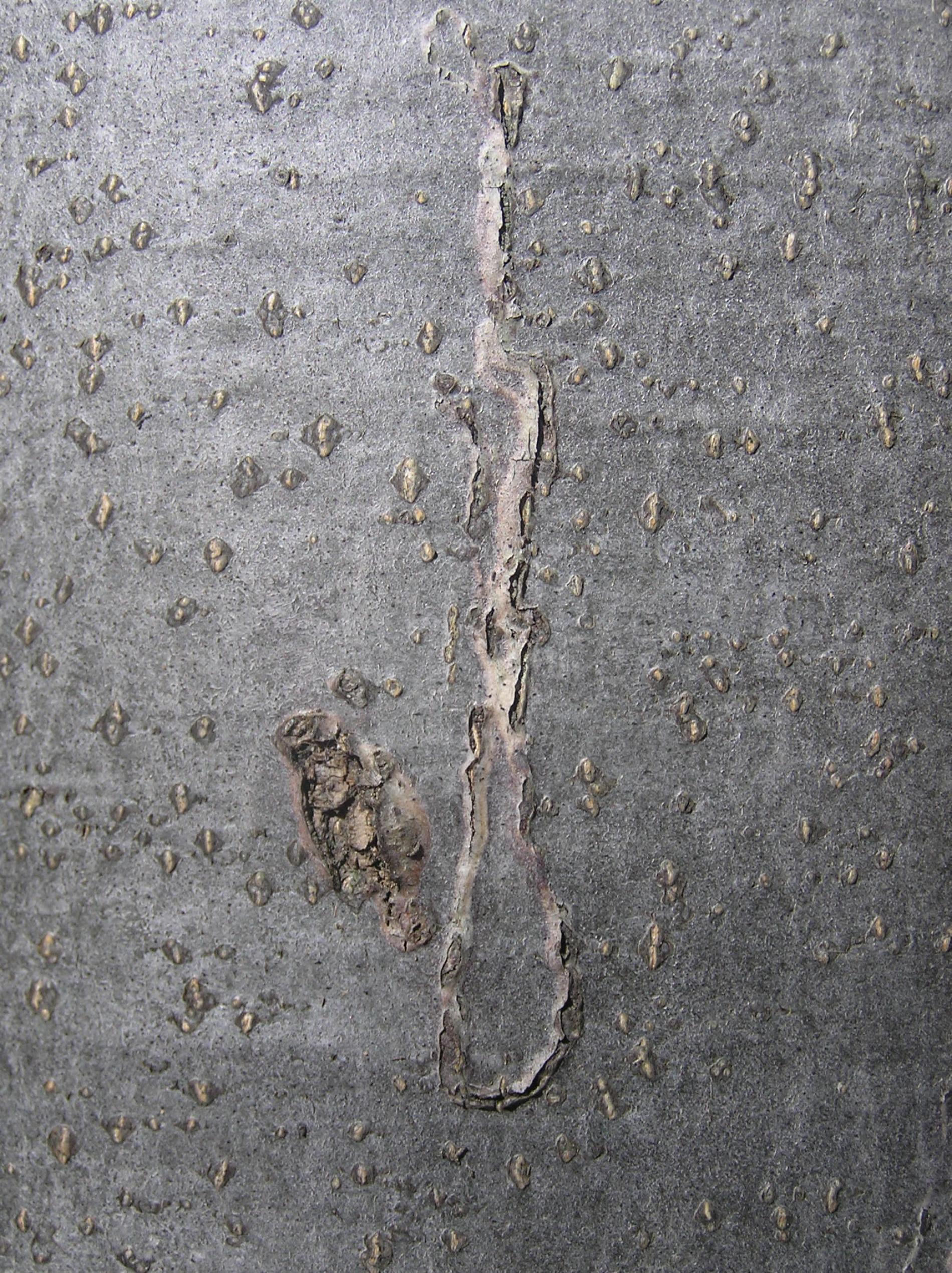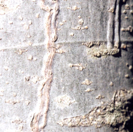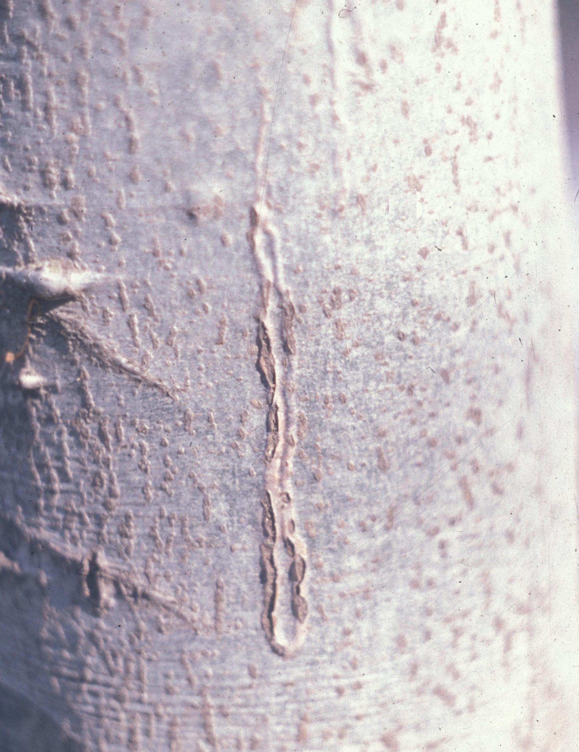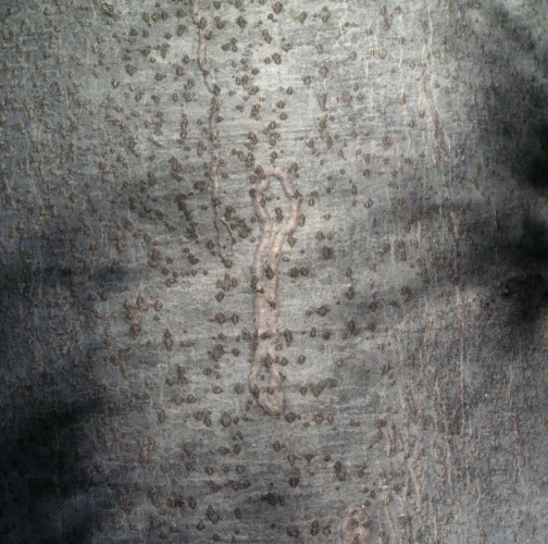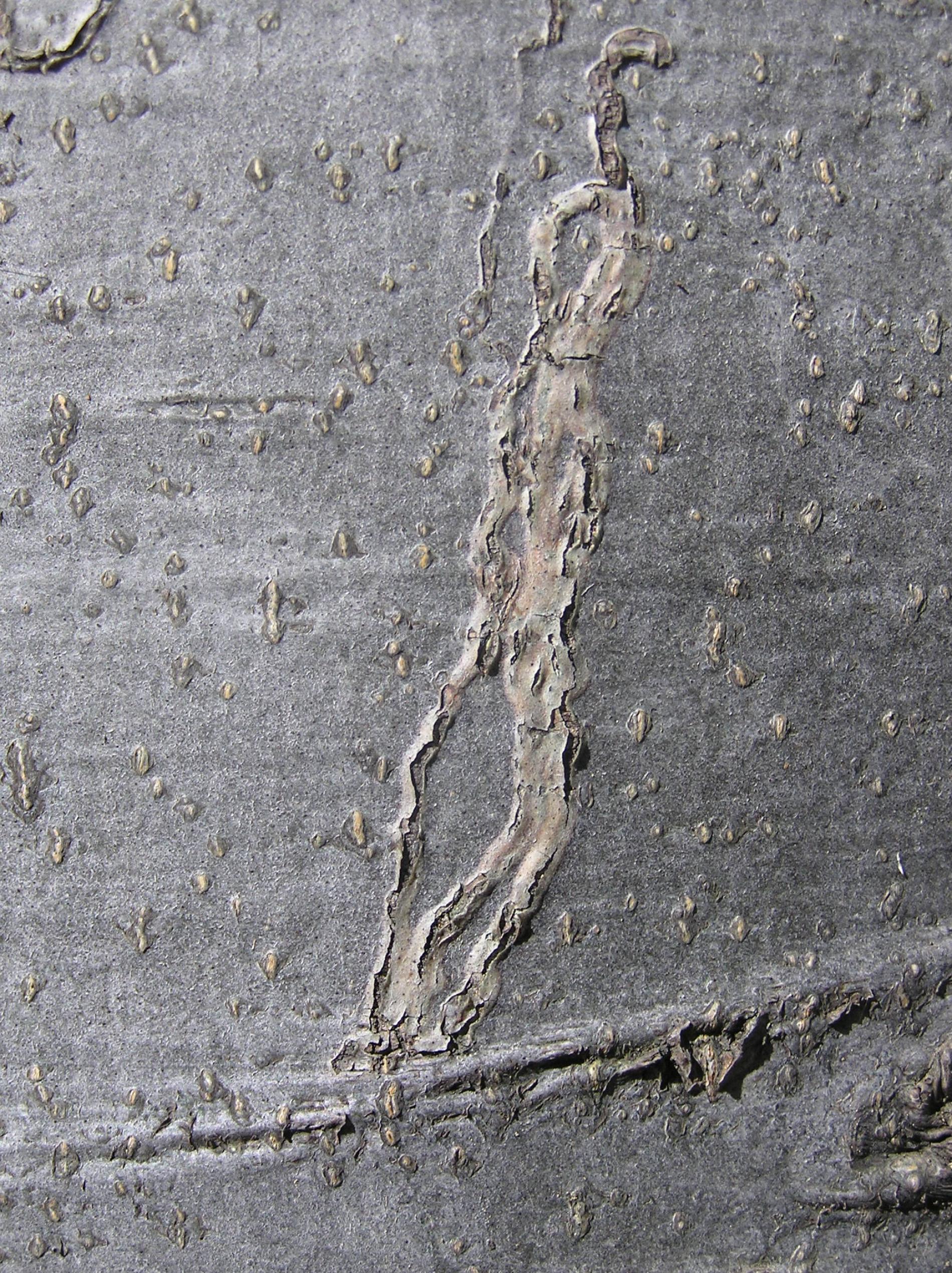 Feeding galleries under the bark, visible from the outside of the bark on the beech trunk. Locally very frequent.
