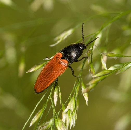 The beetles are 0.5-1.3 cm long, mostly black or brown. If an adult is turned over onto its back, it returns to its original position by a peculiar motion (hurling itself using a massive movable shield) accompanied by a sound effect. Their larvae - wireworms - damage plant roots. They have a strongly chitinous body surface which feels like a wire. They are especially dangerous in forest tree and ornamental tree nurseries, where they can cause root damage and subsequent death of the seedlings. The commonest species are Adelocera murina, Selatosomus aeneus, Athous zebei and Hemicrepidius niger.