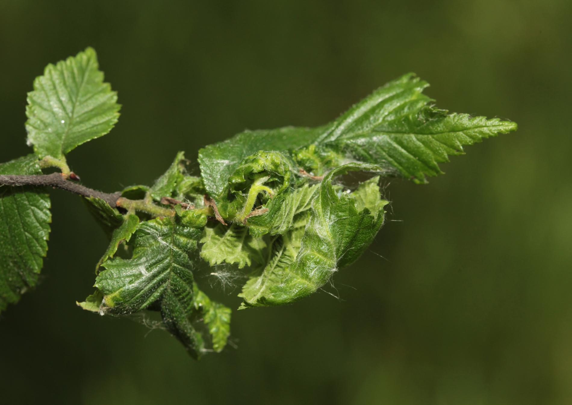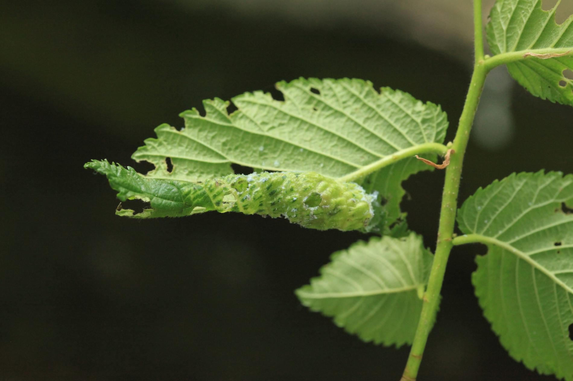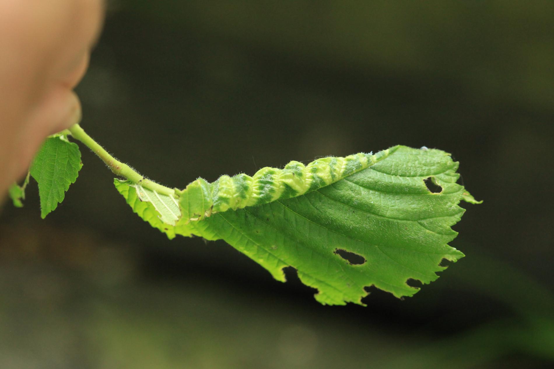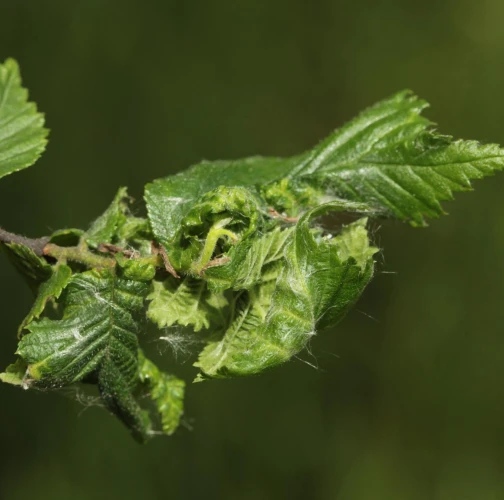 Galls are yellowish-green or pinkish in color are formed when one half of a leaf becomes crinkled and rolls inwards, forming a tubular pouch.
