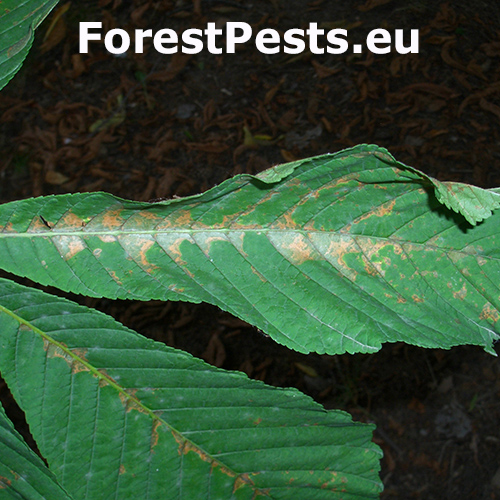 On the underside of leaves are dense colonies, leaf coloration changes to yellowish or reddish, often followed by premature leaf fall. Fine webbing may be visible.