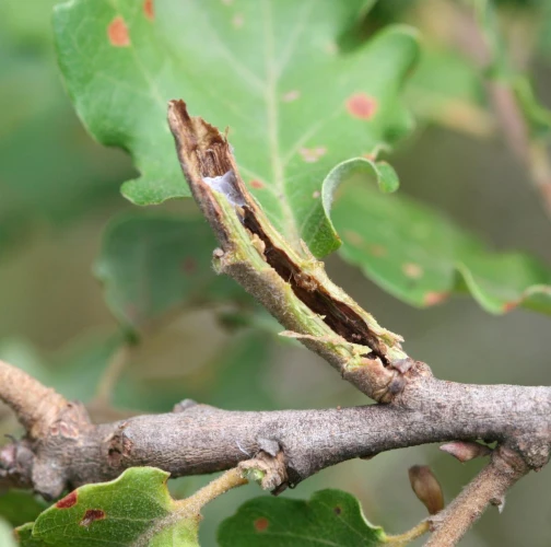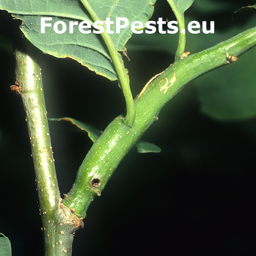 Univoltine. The egg overwinters. The adults (14–16 mm wingspan) fly from June to August. The caterpillar feeds in May/June inside the young shoots, causing thickening and stopping their growth. The symptoms are the same as in case of Stenolechia gemmella. Oak forests.