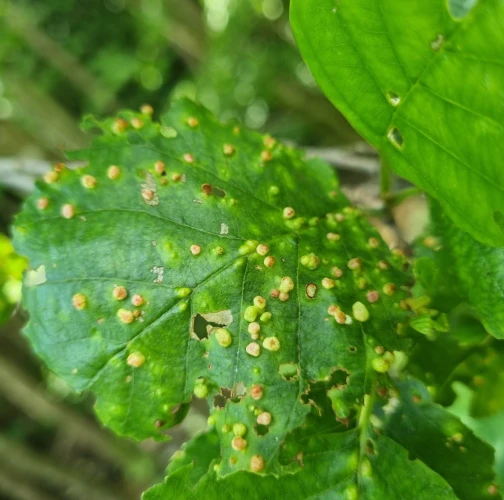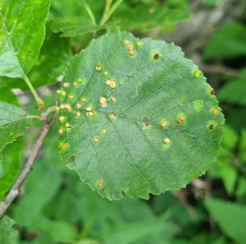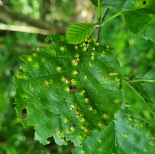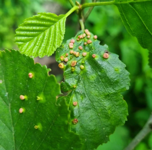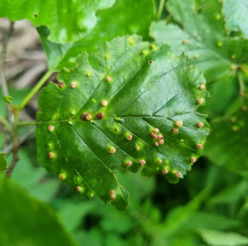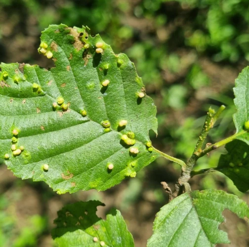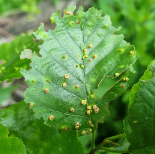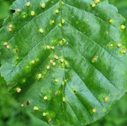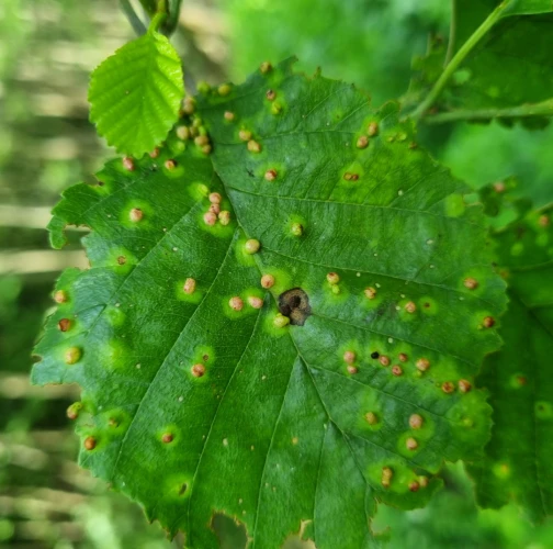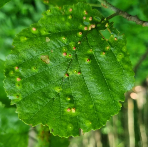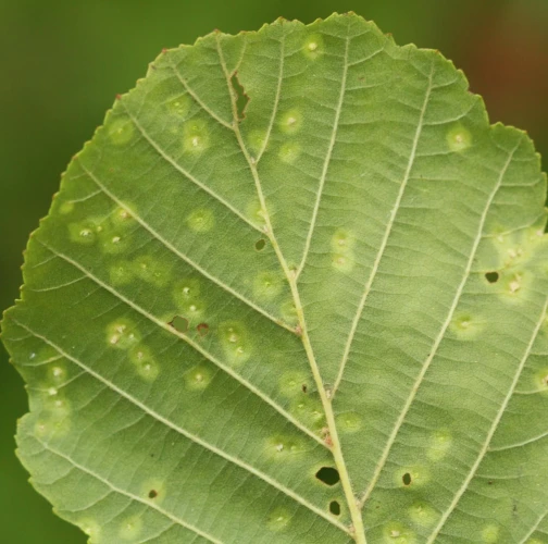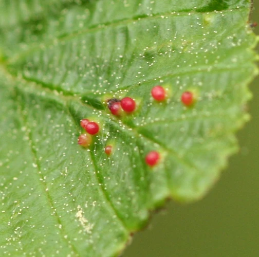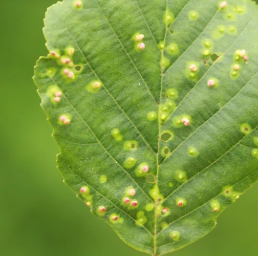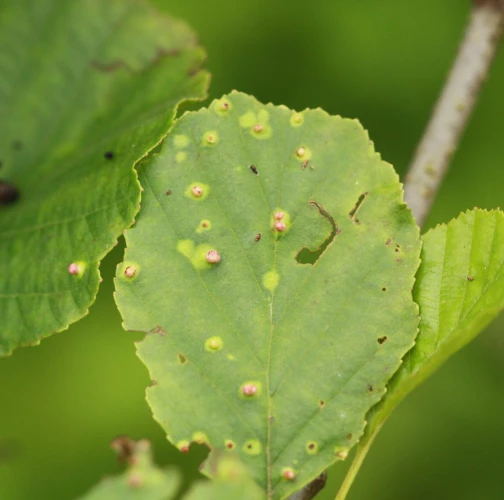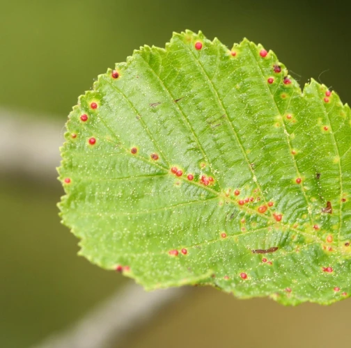 The mites themselves are difficult to see without magnification, but their damage is often visible to the naked eye. There are many small, round 2–4 mm long galls on the upper side of leaves. They occur on a large scale and leaves of the attacked tree can be covered with them. At the beginning they are yellow or green, later turning red or brown. In summary, Eriophyes laevis is a significant pest of alder trees that can cause deformities and stunted growth if left unchecked. Managing Eriophyes laevis infestations on alders requires a multi-faceted approach that involves cultural, chemical, and biological control methods, as well as prevention of spread through quarantine and inspection measures.