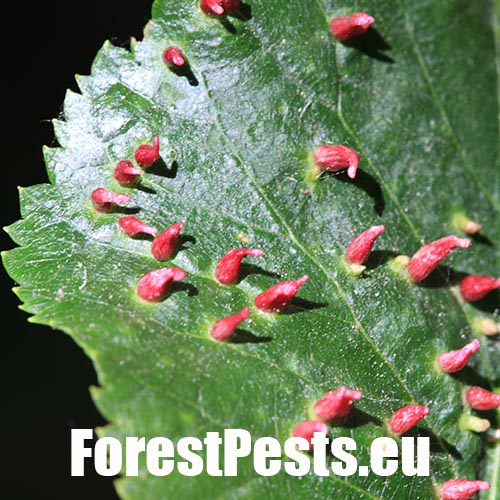 On the underside of the leaves, round or irregular felt pads form. There are usually several galls on the leaf.