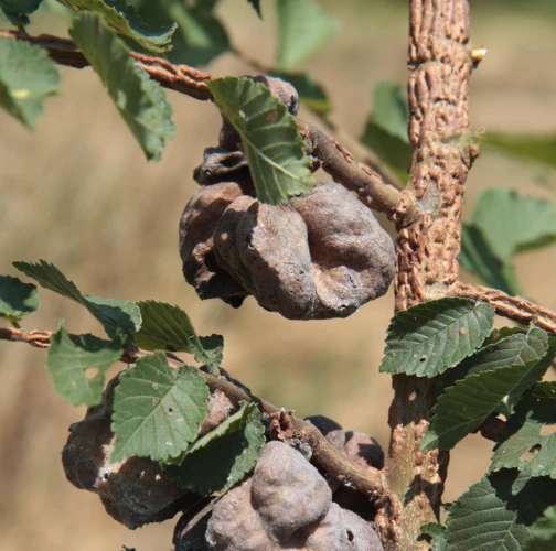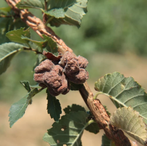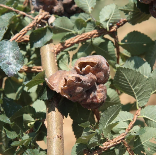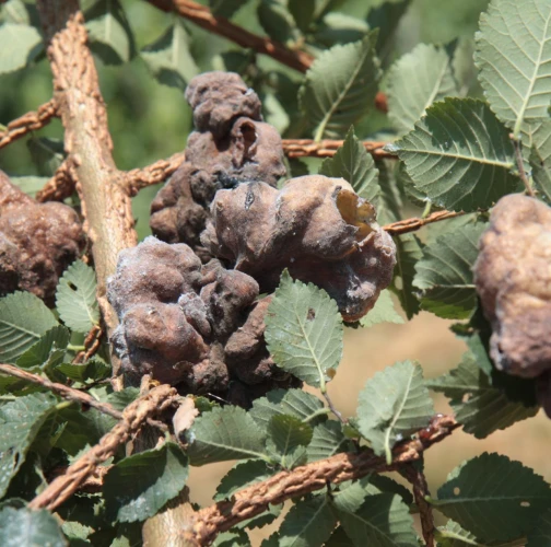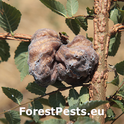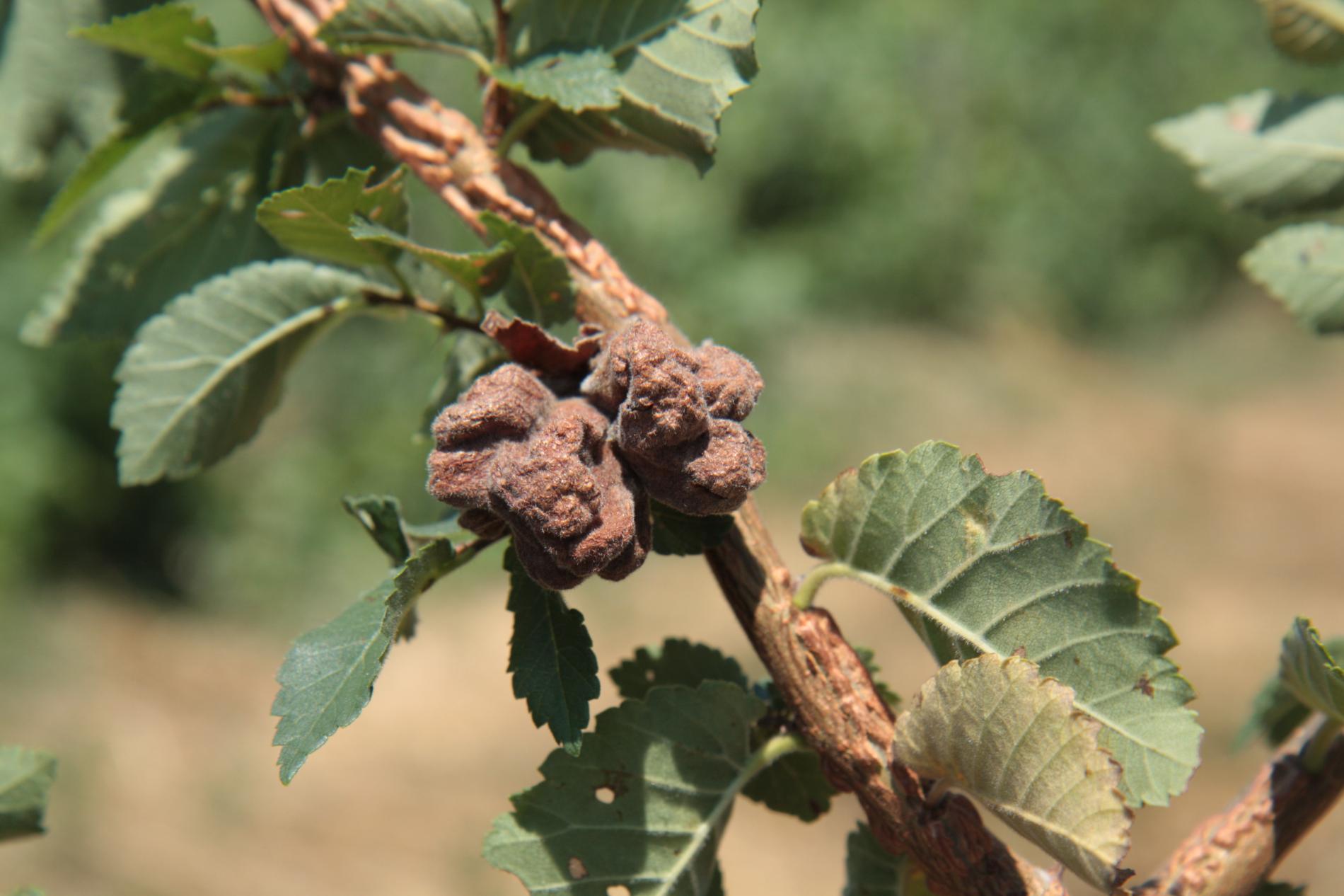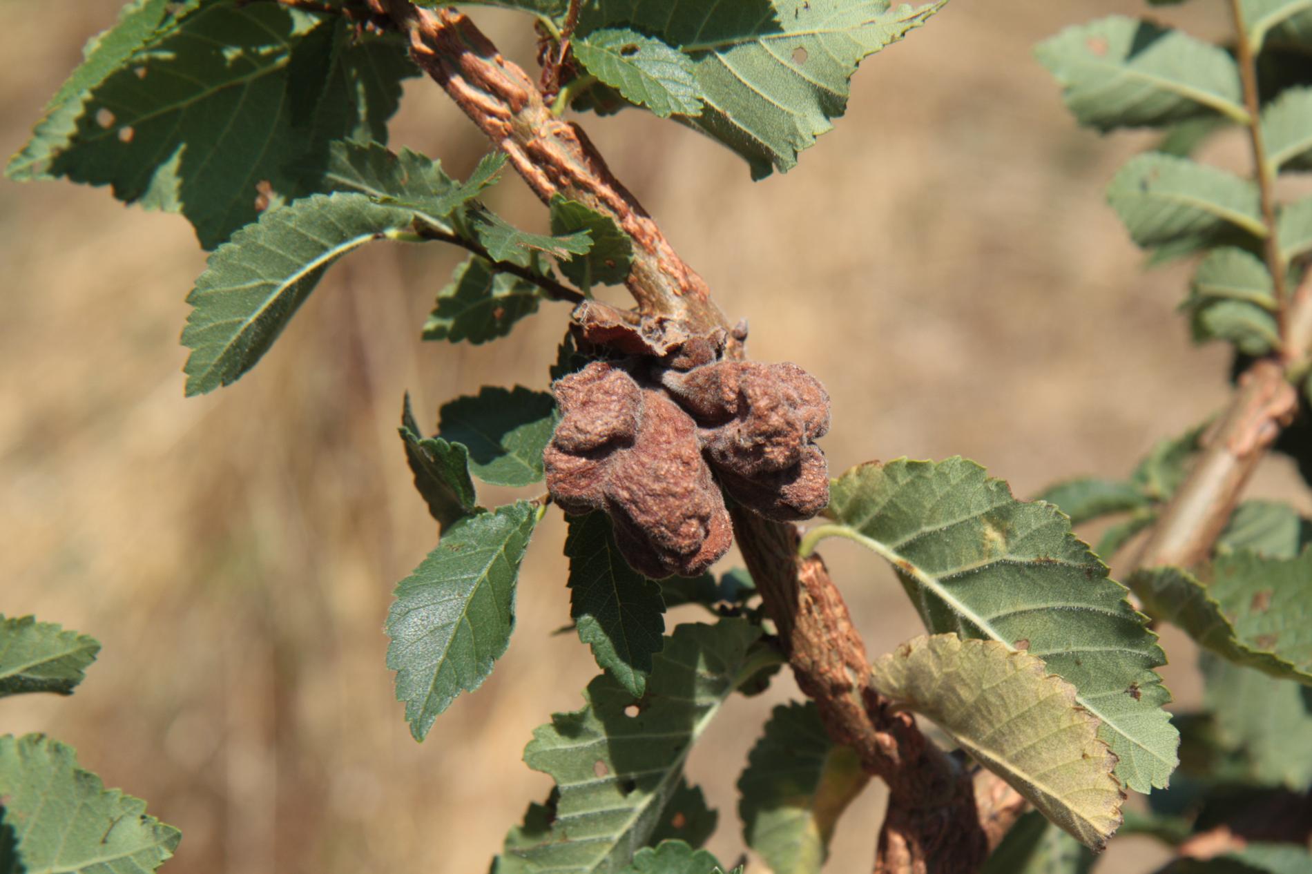 Large, bladder-like gall on leaves of elm. Often occurs several galls on one leaf. Colony of Aphids lives inside.