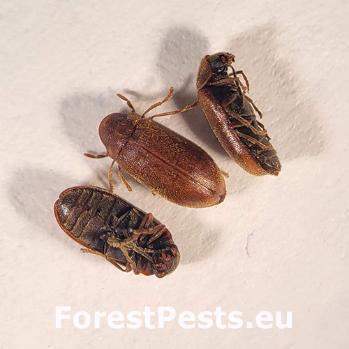 It is a very common species in Europe that develops in spruce cones. The adult is 2 to 4 mm in size, finely flattened, and yellowish-brown in color. Sometimes in May-June, the female lays eggs on spruce cones (under the scales).The larvae develop mainly inside the spruce cones and at the base of the scales. Fine sawdust, possibly also resin granules, scatters from the infected cones, and later, exit holes are visible. Some authors describe that it also damages the seeds of spruce inside the cones, so opinions on its harmfulness vary.In our opinion, as long as there is no massive overpopulation, its forestry significance as a seed pest is currently quite small. Significantly more important damage to spruce seeds is caused by the spruce seed moth Cydia strobinella.
