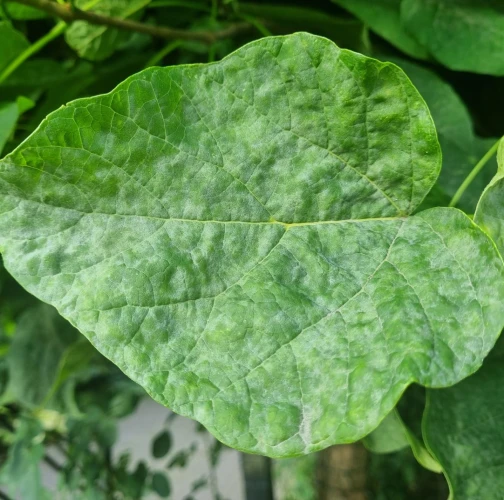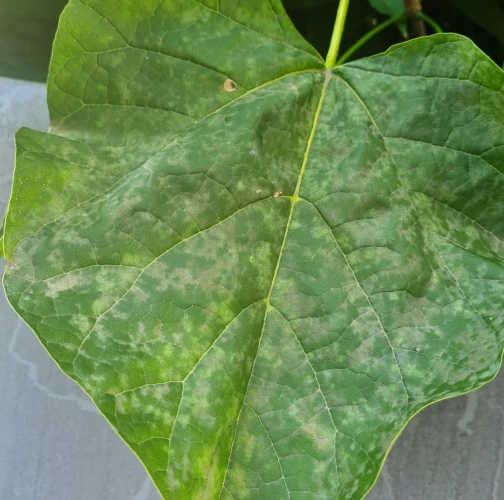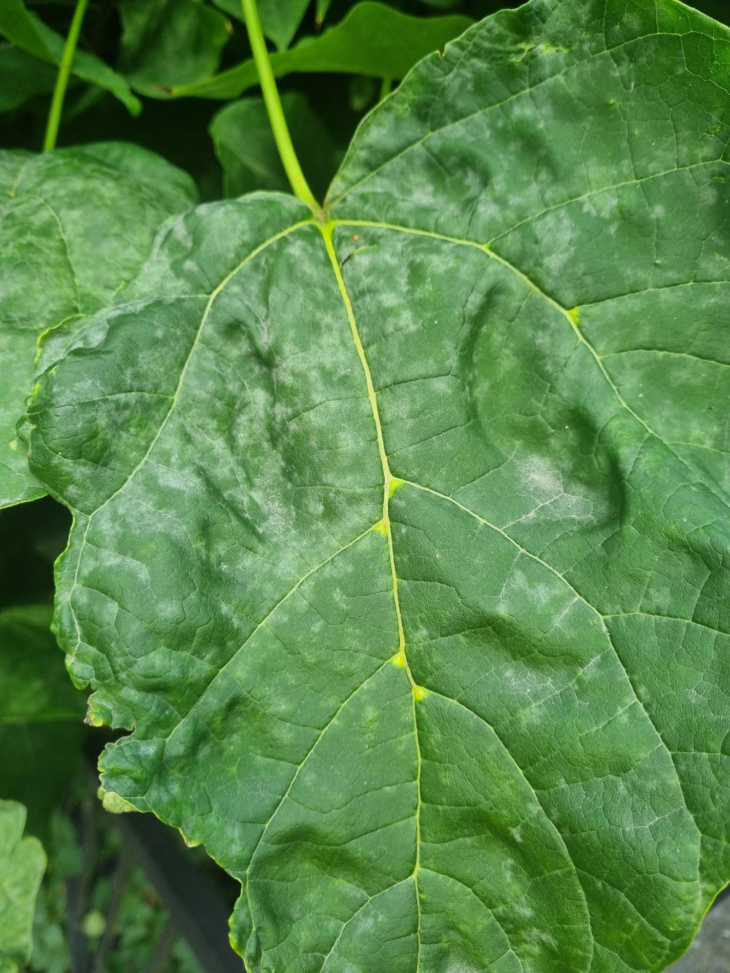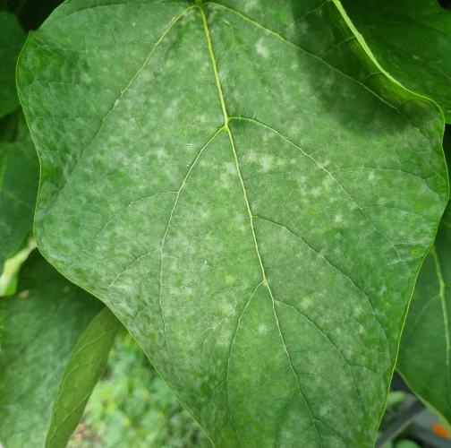 Erysiphe elevata is a fungal pathogen causing powdery mildew on catalpa trees. Originating from North America, it has spread to Europe, where it affects ornamental catalpa species. Catalpa powdery mildew Erysiphe elevata is most prevalent in warm, humid regions and thrives in late summer and fall. White, powdery fungal growth on leaves, stems, and sometimes flowers. Premature leaf drop, leaf yellowing, and reduced plant vigor. While generally not fatal, Erysiphe elevata can significantly weaken catalpa trees, reducing their aesthetic value and making them more susceptible to other stresses. The fungus poses a threat to ornamental plantings of catalpa, especially in parks and gardens across Europe, where it can negatively impact the tree's health and appearance