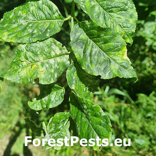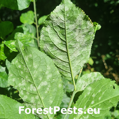 Erysiphe euonymi is a fungal pathogen responsible for powdery mildew on Euonymus europaeus (European spindle tree). Also attack Euonymus atropurpureus, E. latifolius a E. verrucosus. This disease is characterized by white, powdery fungal growth on the surfaces of leaves, stems, and sometimes flowers, leading to distorted growth, leaf curling, and reduced plant vigor. The fungus thrives in warm, dry conditions and spreads through airborne spores. Effective management includes ensuring good air circulation, removing affected plant parts, and applying appropriate fungicides if necessary.