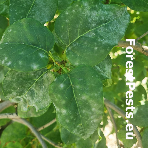 Erysiphe syringae (synonymum: Microsphaera syringae) is a specialized fungal pathogen that causes powdery mildew on various lilac species (Syringa spp.). It occurs widely across Europe, particularly in regions with warm and humid summers. The fungus overwinters as cleistothecia (closed fruiting bodies) on fallen leaves or as mycelium on buds and young twigs. Infections typically start in spring and may recur in several cycles during the growing season. Heavy infestations reduce the ornamental value of lilacs and may lead to premature leaf drop. The species is common in European parks and gardens.