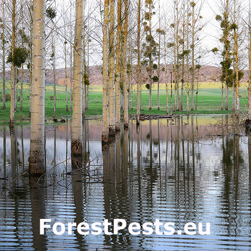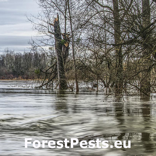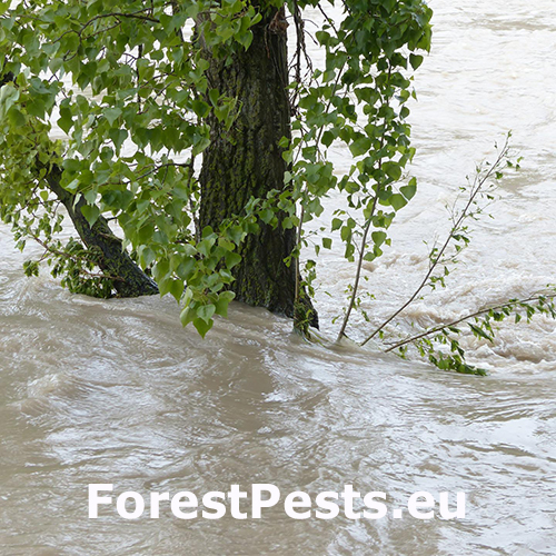 Repeatedly occurring floods endangers a variety of forest stands, mostly in oaks, ashes and elms. Willows, poplars, alders and European hornbeam are a bit more resistant to conditions of water over-saturation. Shallow rooted tree species, especially Norway spruce, are in permanently wet sites very endangered by wind (potential uprooting).