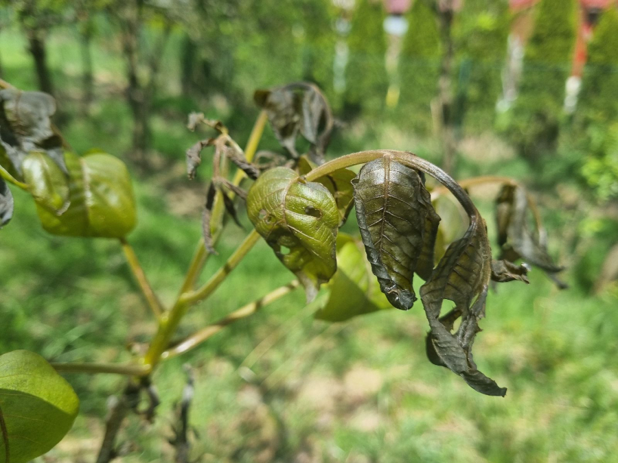 Frost damage appears on almost all tree organs. Very serious damage occurs especially to the bark of stems and on branches. Frost damage occurs often in young trees on current shoots, buds, leaves and flowers.