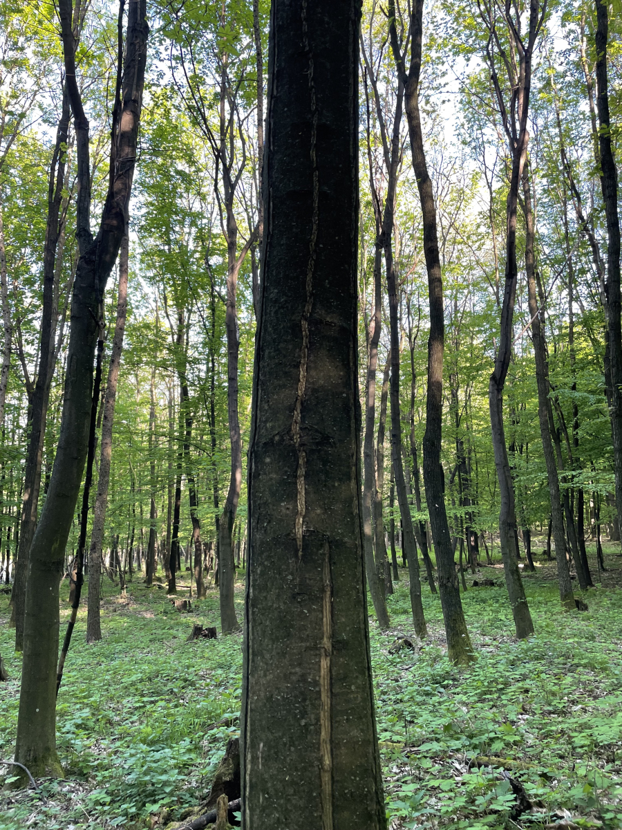 Pulling up of seedlings by frost occurs in shallow-rooted trees such as Norway spruce, birches, European beech and ashes. Young, not fully developed shoots of trees, also buds, leaves, flowers are most endangered by frost especially in walnut trees, ashes, black locusts, Douglas fir. Winter bark necrosis occurs in tree species with a smooth bark, especially European beech, Silver fir and European hornbeam. Frost cracks can also occur in tree species with markedly developed wood rays (oaks, elms, European chestnut, horse chestnut).