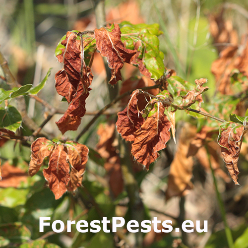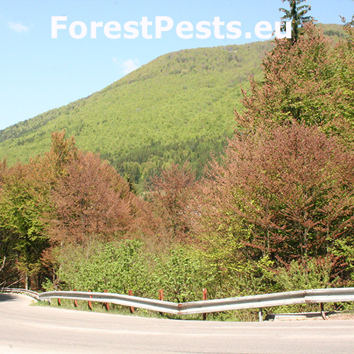 In forest plantations, established in the autumn with little or no snow cover in winter, surface-frost form may appear, which causes extraction (pushing up) of seedlings. The phenomenon is caused by the expanding the volume of moist soil by freezing, when seedlings are lifted over the ground surface. Early frosts damage especially young, not fully developed shoots. The damage is manifested by wilting and sudden fall of leaves and needles. In older forest stands, the bark cracks, which later falls off. As a result of repeated freezing, so called frost cracks on bark can occur. During long-lasting severe winter frosts, typical frost cores form typically in beech stems.