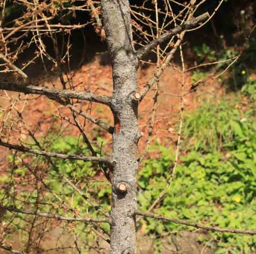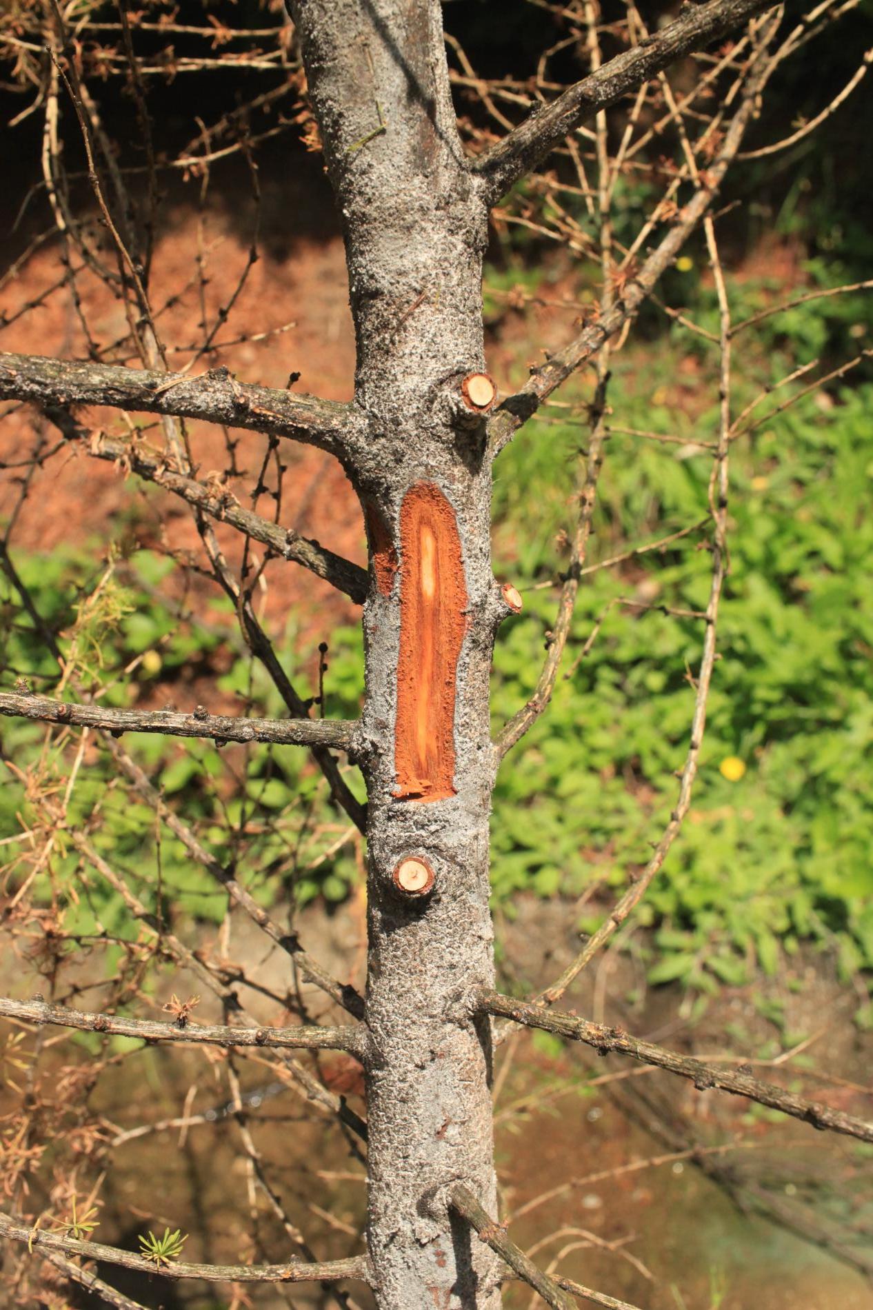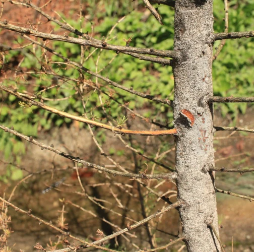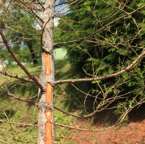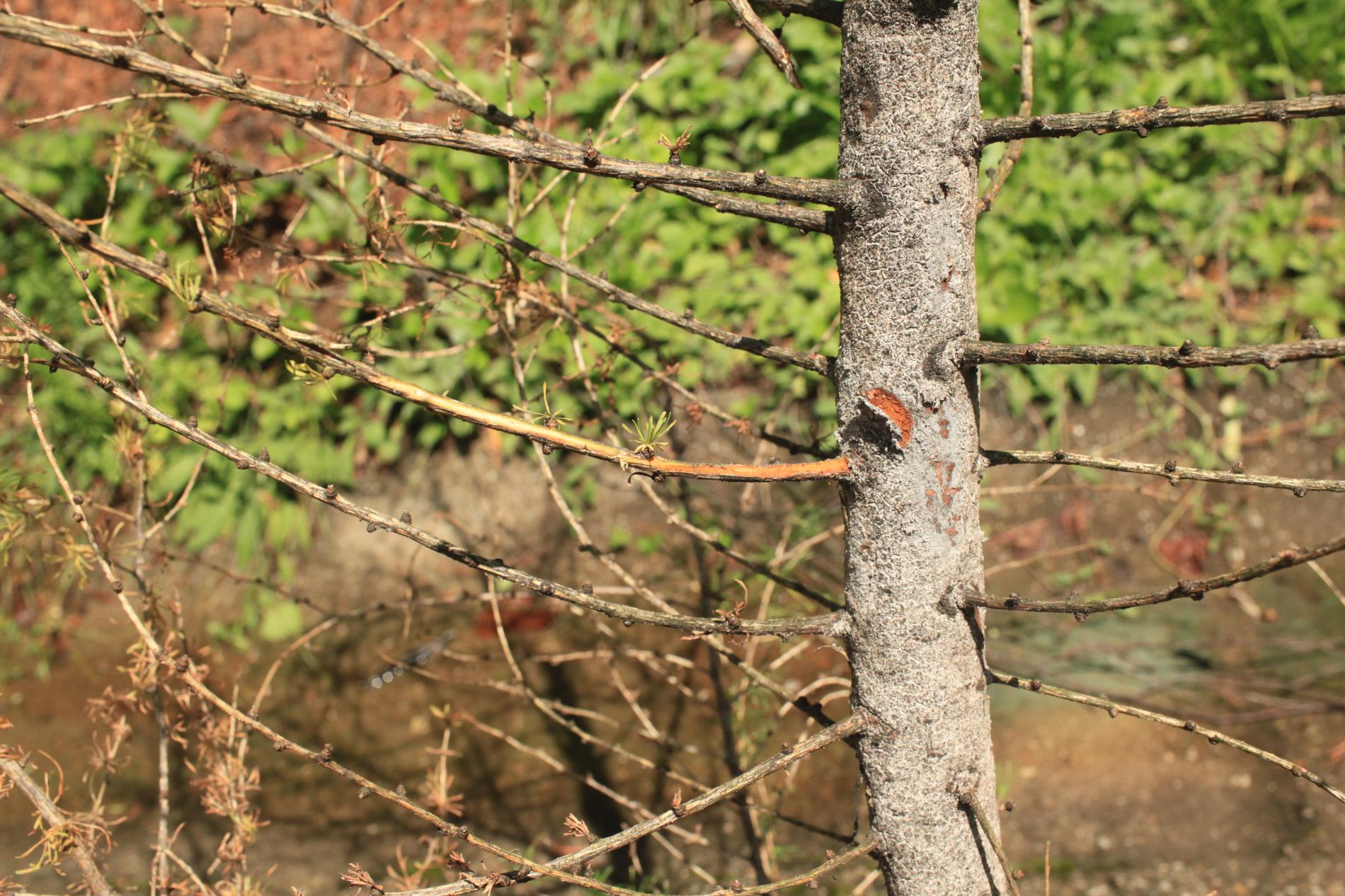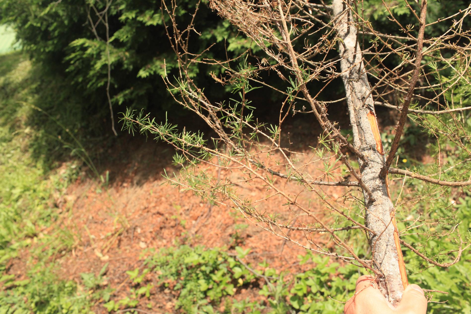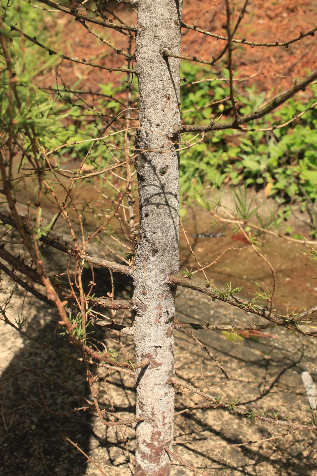 Die back of branches and whole crowns of young trees up to 15 years.