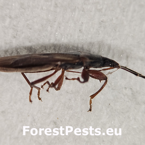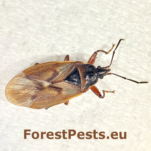 Gastrodes abietum, known as the spruce cone bug, is a small bug that primarily inhabits coniferous trees of the family Pinaceae, particularly Picea abies (Norway spruce) and Abies alba (silver fir). It occasionally utilizes other hosts, such as Larix decidua (European larch) and Pinus species. This oligophagous species is widely distributed across Europe, from the Mediterranean to the polar regions, and extends eastward to Siberia. It thrives in montane forests and occasionally in lower altitudes.
