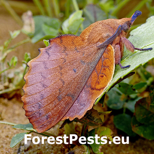 Gastropacha quercifolia, known as the lappet moth, is a quite large nocturnal moth whose caterpillars feed on leaves of various deciduous trees and shrubs, especially oaks (Quercus spp.), birches (Betula spp.), and willows (Salix spp.). This univoltine species overwinters in the egg stage, with larvae appearing in spring and pupating in summer. Adults fly from June to August. The caterpillars feed openly on foliage and can occasionally cause significant defoliation when populations are high. It is widespread across Europe, particularly in warmer lowland and hilly regions. While usually not a major pest, local outbreaks can affect the aesthetic appearance and potentially the vitality of host trees.
