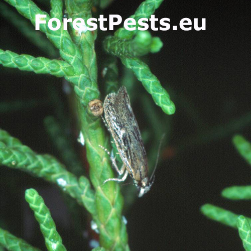 Cypress groundling Gelechia senticetella is a small moth species of the family Gelechiidae associated mainly with coniferous shrubs and trees. Larvae develop primarily on junipers (Juniperus spp.), but they also occur on cypresses and related genera such as Thuja, Chamaecyparis and Cupressus. In early instars, caterpillars mine needles and young shoots, later they feed externally while living inside silken tubes or tent-like shelters within the crown. The species overwinters as a larva and has one generation per year. It occurs mainly in gardens, parks and natural stands with juniper or cypress presence. The intensity of attack is usually not strong, but local mass occurrence has been recorded, especially in southern Europe, where repeated feeding may worsen the overall health condition of host plants and significantly reduce their aesthetic value. The species is distributed across most parts of Europe and is expanding its range in areas with increasing use of ornamental host plants.