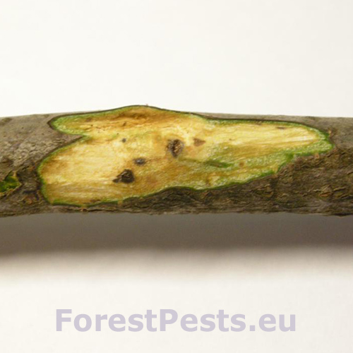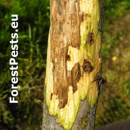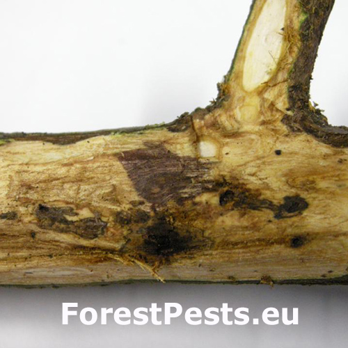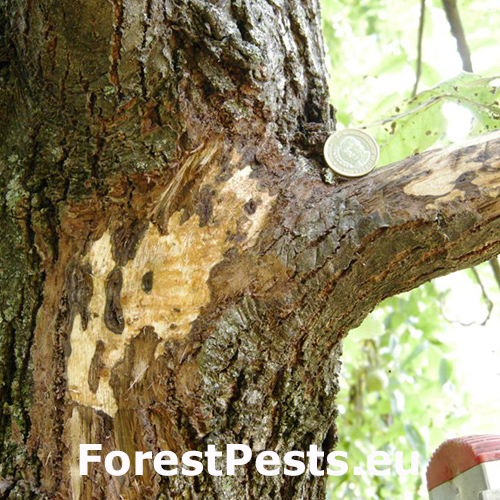 In Europe, G. morbida has been detected in several regions but remains under surveillance to prevent widespread outbreaks. The disease significantly affects the health and appearance of walnut trees, causing crown thinning, yellowing leaves, and extensive bark damage. The combined effects of beetle activity and fungal colonization pose a serious threat to walnut populations in affected areas, often resulting in branch dieback and tree mortality within three to four years.