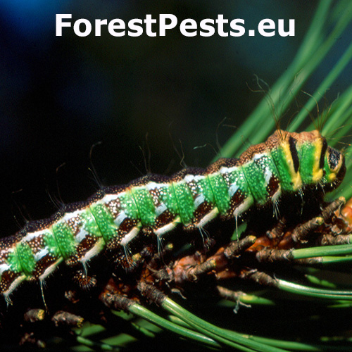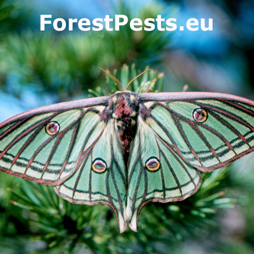 Graellsia isabellae, also known as the Spanish moon moth, is a species of moth in the family Saturniidae. While its larvae primarily feed on coniferous trees, including Pinus species (especially Pinus sylvestris), it is not generally considered a pest. The moth is more notable for its beauty than for causing significant damage to pine forests. This moth species has one generation per year (univoltine). The adult moths typically emerge in late spring, around May or June. The eggs are small and round, usually laid singly or in small groups on the needles of Pinus species. The caterpillars start off small and green, with distinctive white markings along their sides. As they grow, they develop more pronounced colors and patterns, including a greenish body with light and dark stripes. Pupation takes place in autumn in the soil. Pupa overwinters. In localized areas, if populations of Graellsia isabellae are high, their larvae could cause some small defoliation of pine trees, but this typically doesn’t reach a level where they are considered a significant pest. Conservation efforts are often more focused on protecting this species, as it is considered vulnerable or rare in certain regions of its range, particularly in Spain and France.