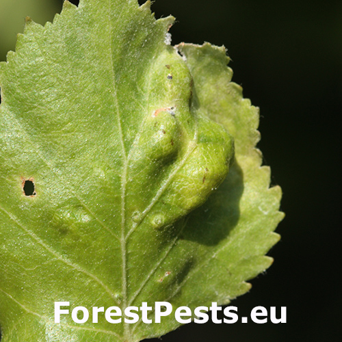 Birch blister aphid Hamamelistes betulinus is primarily found on the undersides of leaves of downy birch (Betula pubescens). However, they can also be found on silver birch (Betula pendula) and occasionally on grey alder (Alnus incana). In Europe and northern Asia, the birch blister aphid Hamamelistes betulinus does not produce sexual forms and does not undergo host alternation. It feeds on the undersides of birch leaves and its feeding activity causes pale yellowish blisters to develop on the upper surfaces of the leaves. During winter, the aphid overwinters as first instar larvae on the twigs of the birch trees. In Japan, however, there is a host alternation observed between Hamamelistes betulinus and its primary host, Hamamelis. Overall, Hamamelistes betulinus displays different reproductive strategies and host preferences depending on its geographical location, with the presence or absence of host alternation playing a significant role in its life cycle. There are many other aphids live on birch.