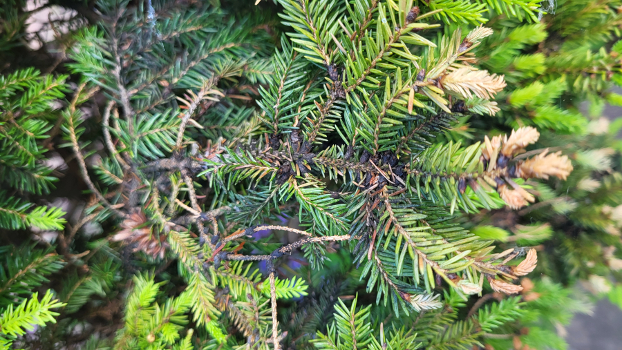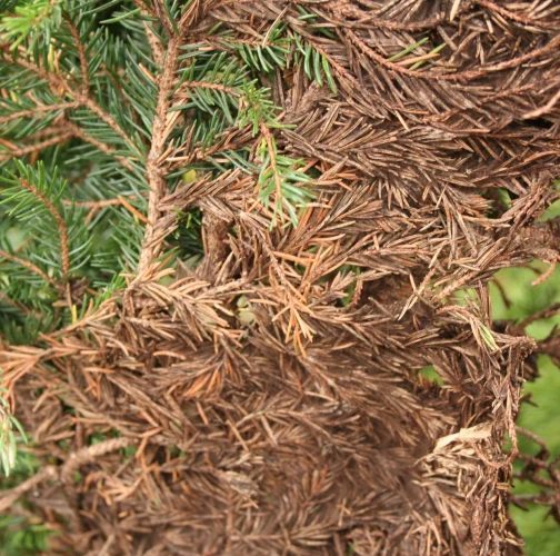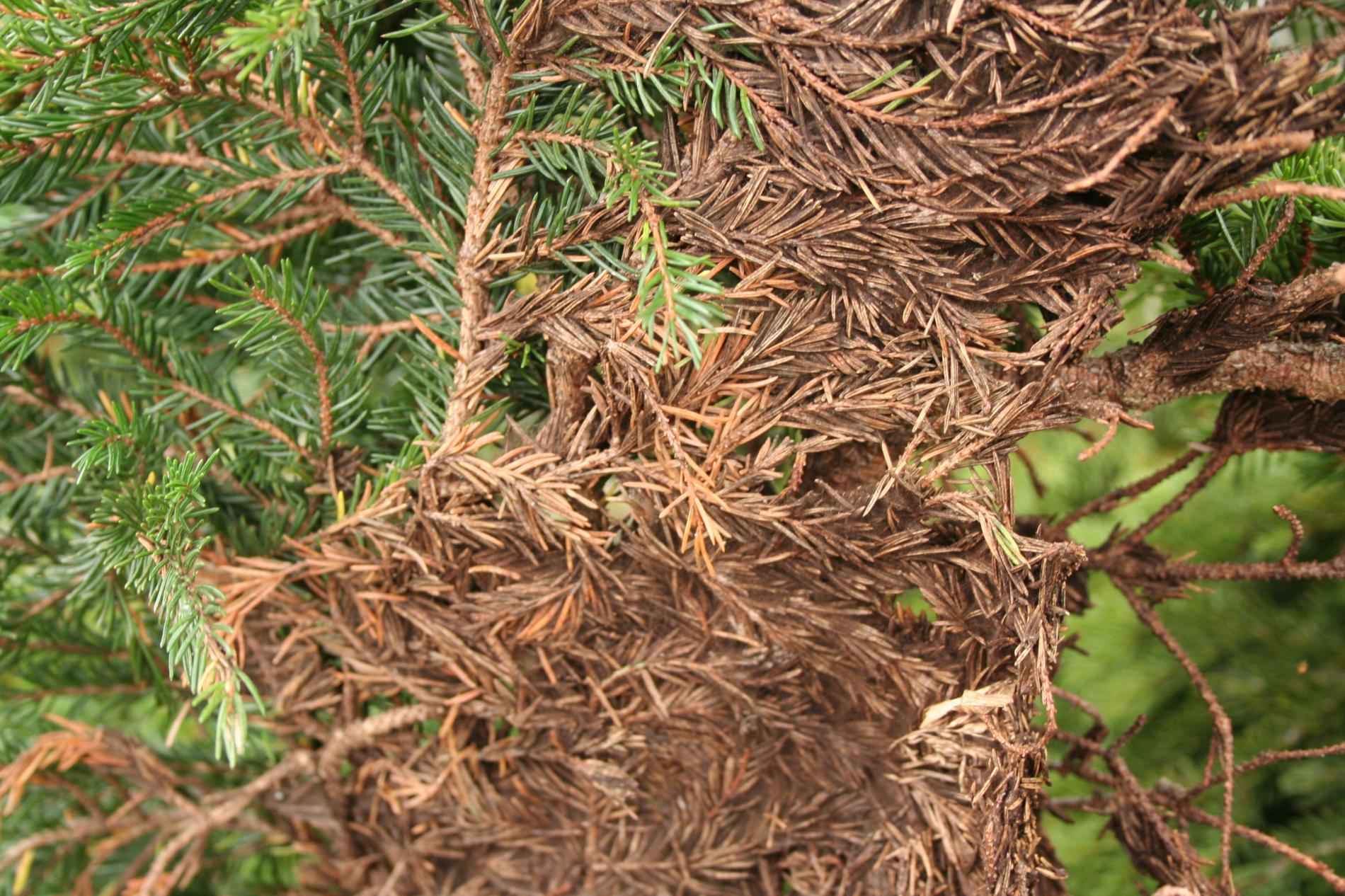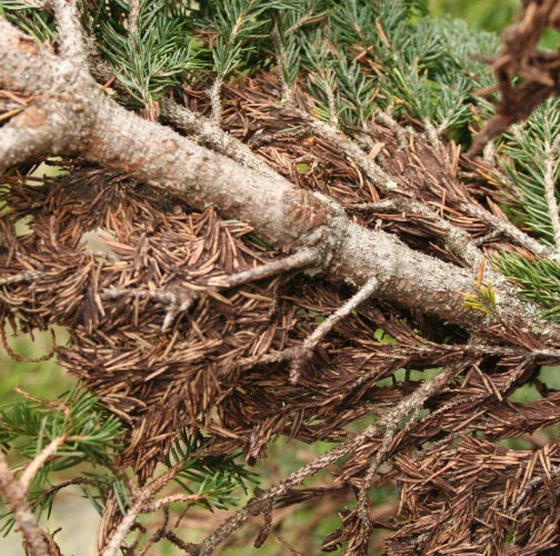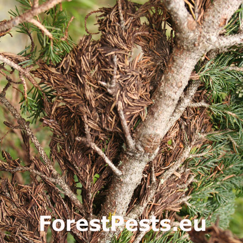 The fungus grows very well at a temperature of 0 ° C with an optimum of 15 ° C and at an air humidity above 95%. The stands are prone in mountainous places in places where the snow covers the branches 6 - 7 months of the year. The fungus first lives as an epiphyte, mechanically overgrown and tangled needles and twigs, later penetrates through the vents into the needles, parasitizes on living tissues and causes them to die. On older trees and higher rhododendrons, it attacks only the lower branches. However, it is very harmful in forest nurseries. The infection occurs in a time without snow.