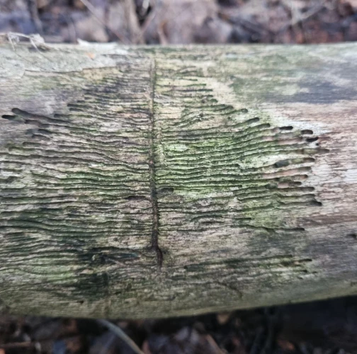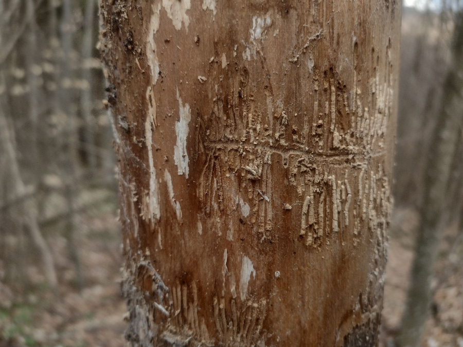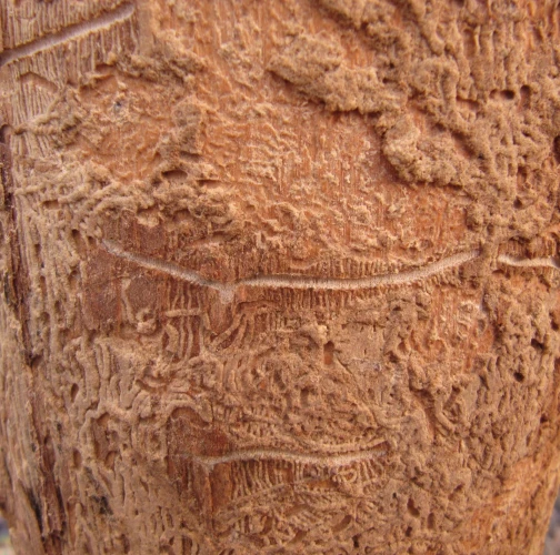 Galleries under the bark.